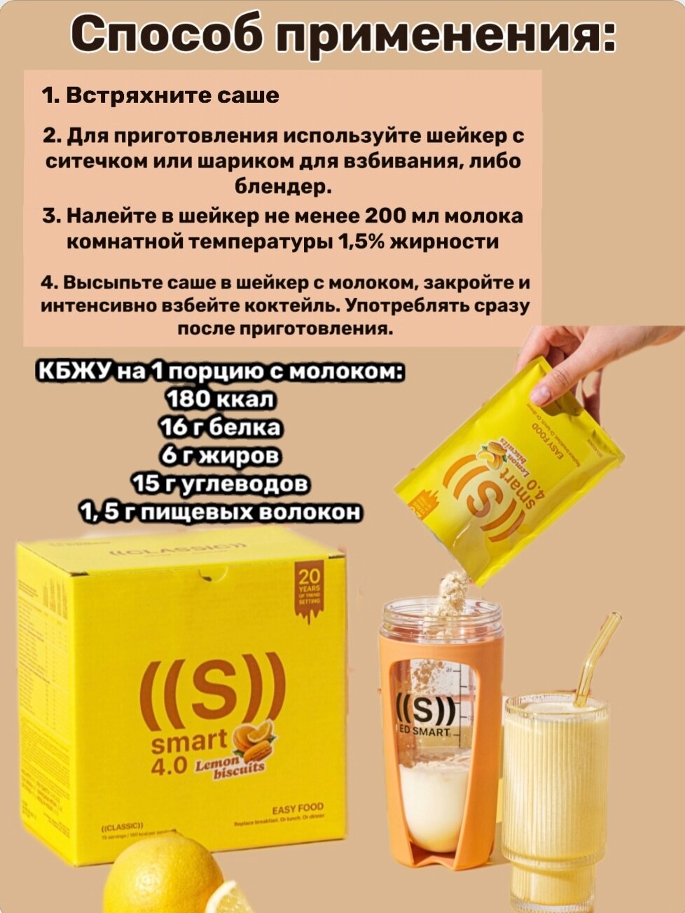 СохранитьПротеиновый коктейль для похудения или набора мышечной массы 15 саше со вкусом "Лимонное печенье" интересное: