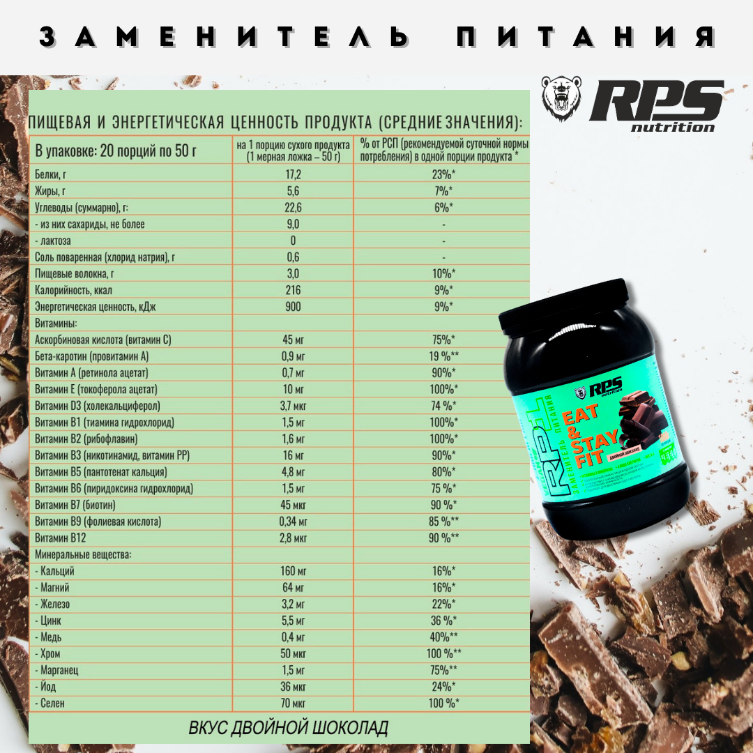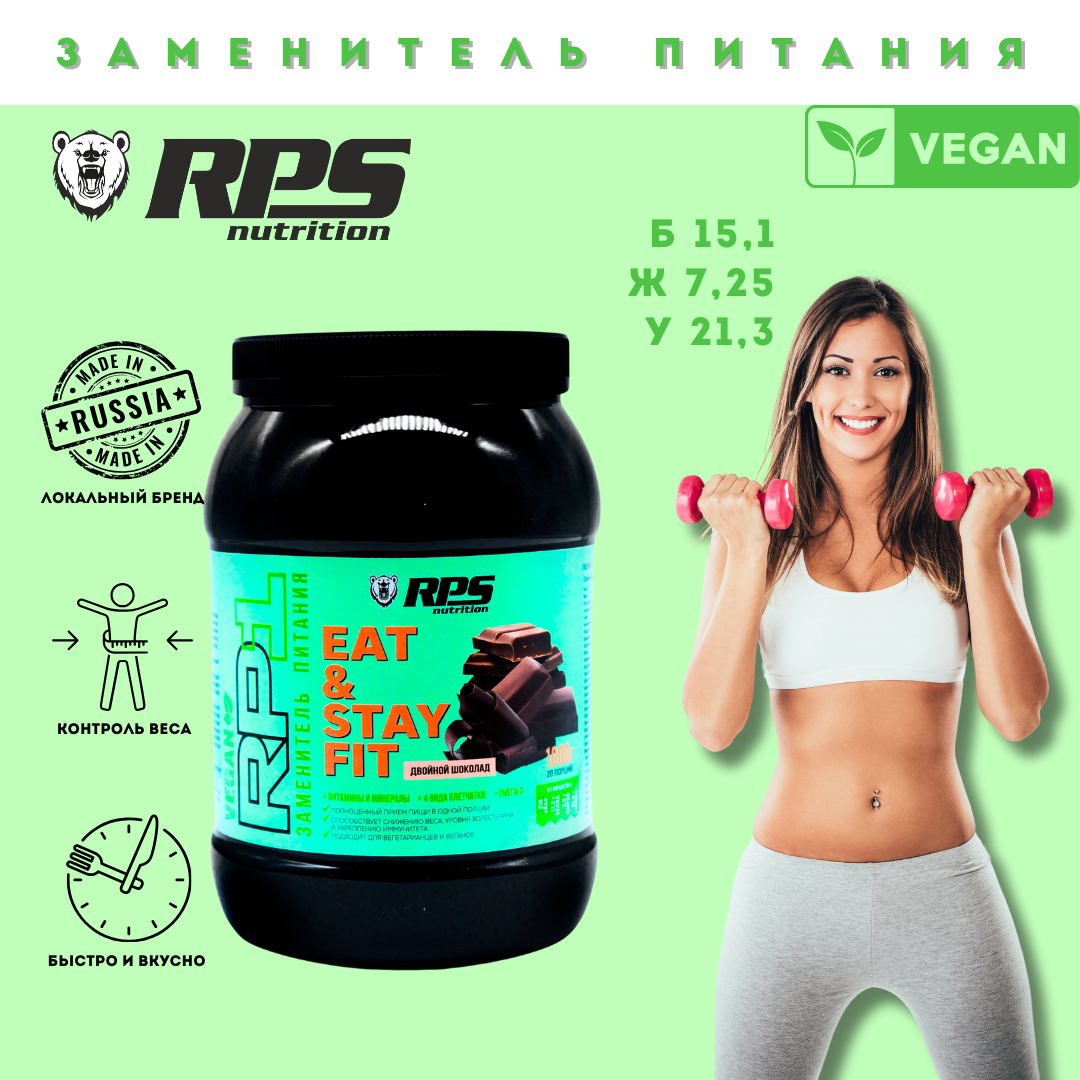 EAT AND STAY FIT VEGAN Заменитель питания RPS NUTRITION пакет 1000гр. Вкус: Двойной шоколад интересное: