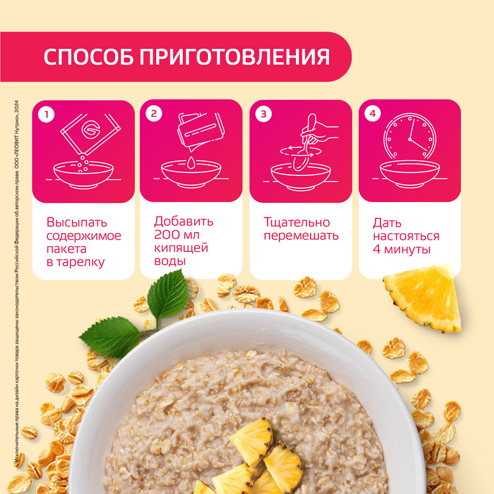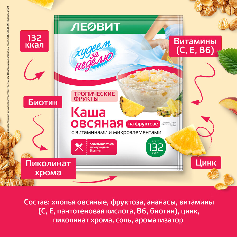 Каша овсяная Тропические фрукты без сахара 10 шт Худеем за неделю ЛЕОВИТ диетическая с витаминами быстрого приготовления интересное: