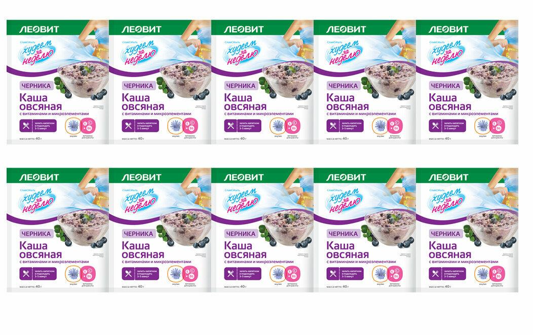 Леовит Худеем за неделю Каша овсяная "Черника", 40 гр, 10 шт. в уп. интересное: