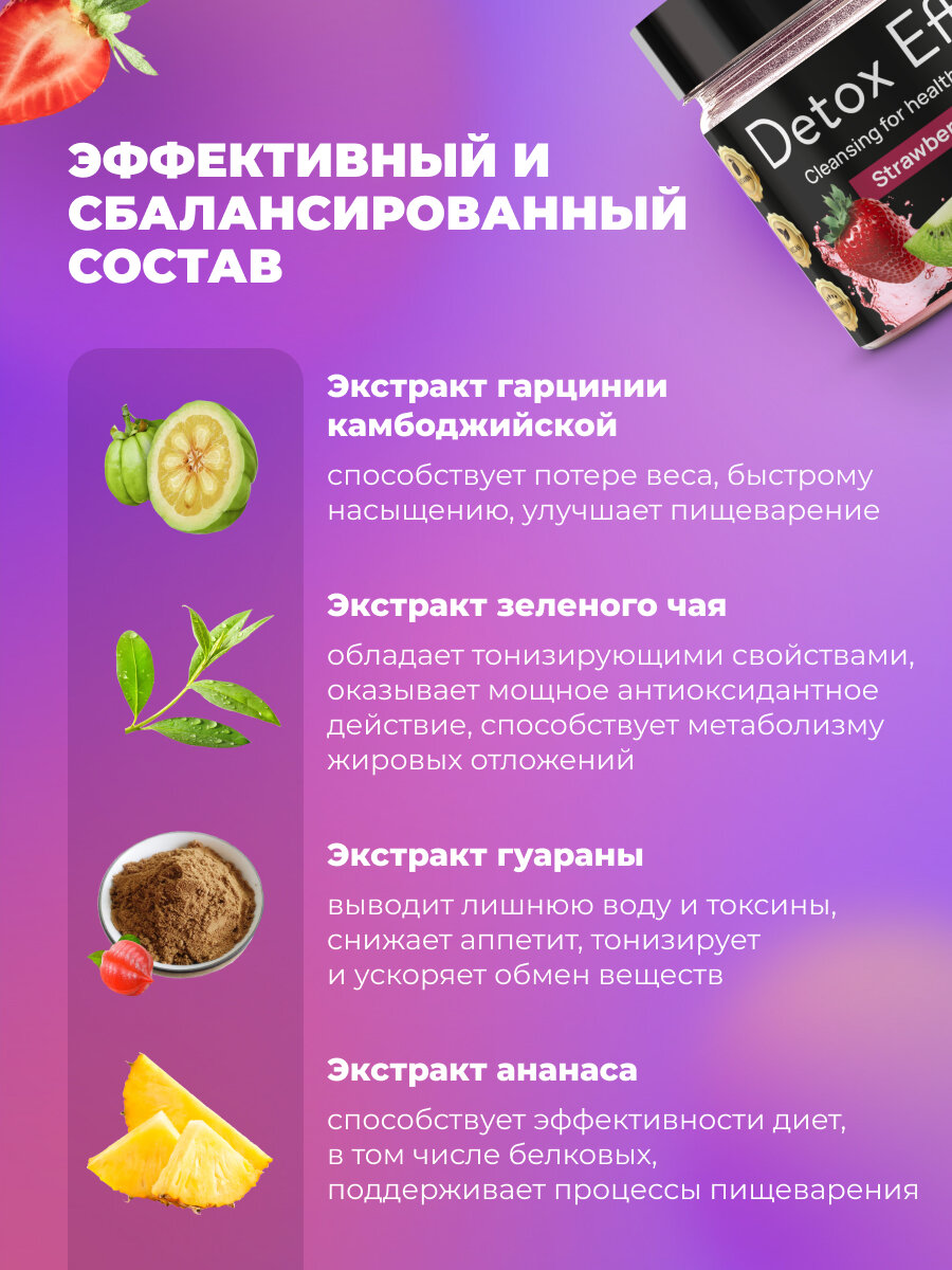 Купить Дренажный напиток для похудения от отеков детокс коктейль Fit and Joy, вкус ароматные клубника-киви
