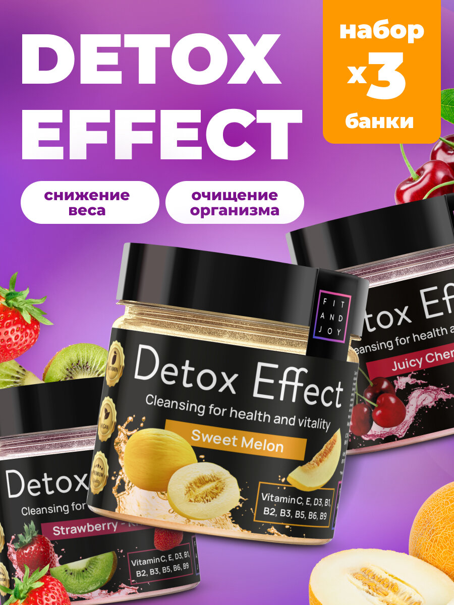 Купить Дренажный напиток для похудения от отеков детокс коктейль Fit and Joy 3 шт, вкус клубника-киви вишня дыня