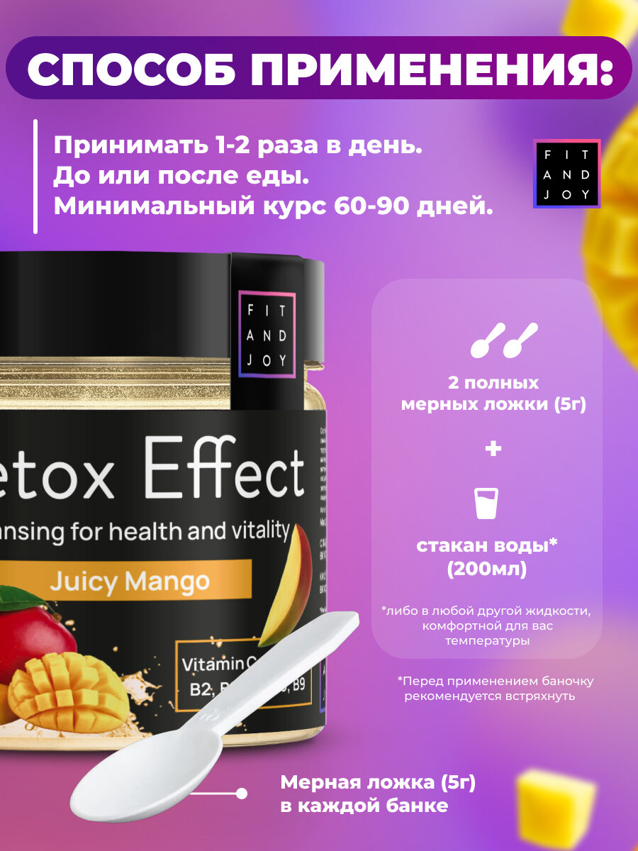 Дренажный напиток для похудения от отеков детокс коктейль Fit and Joy, вкус сочный манго