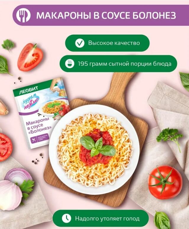 Специализированное питание "Худеем за неделю" Макароны в соусе "Болонез", 10 шт. по 45 гр. интересное:
