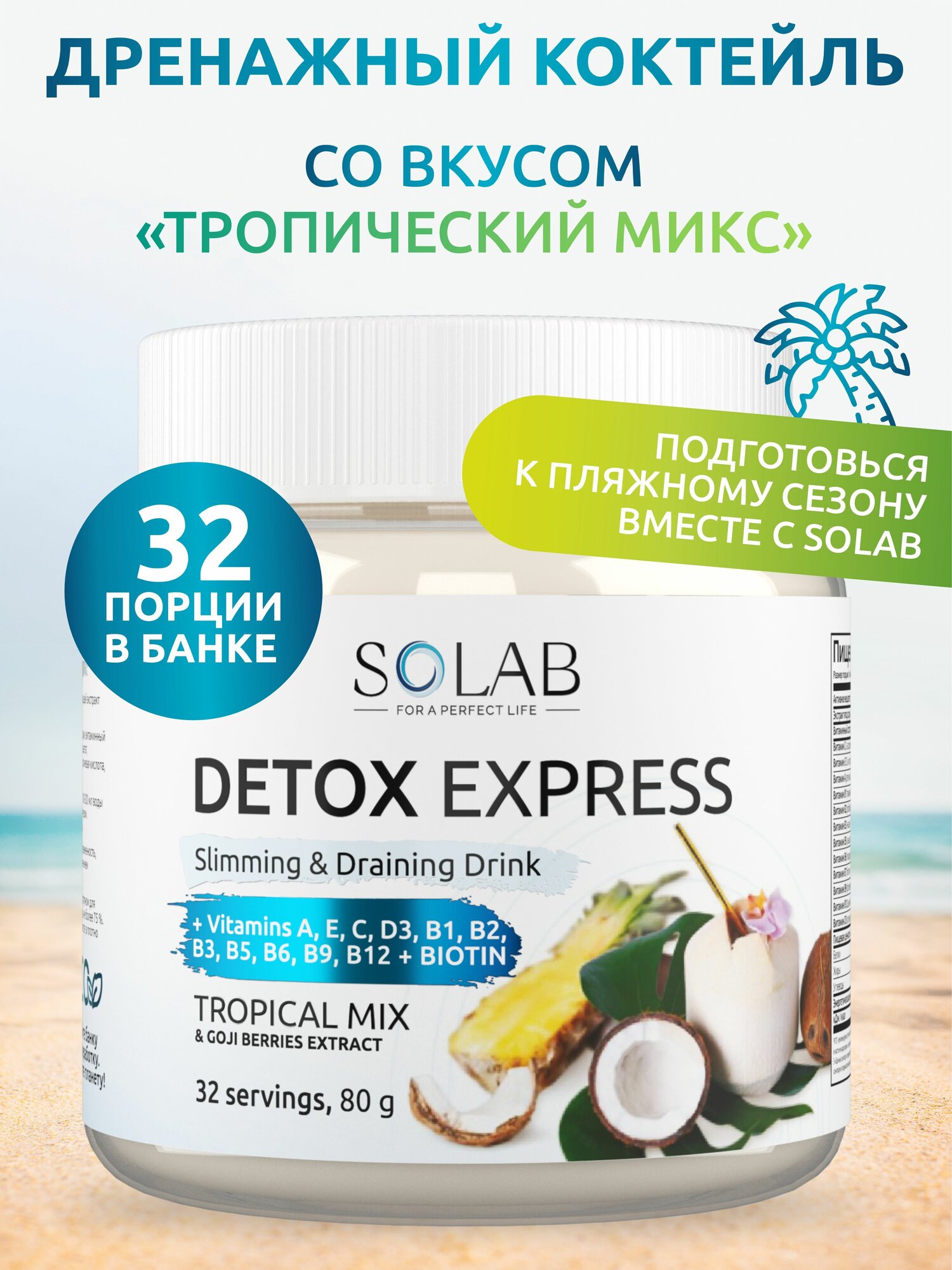SOLAB Детокс коктейль для похудения с ягодой годжи / чай с эффектом очищения, 32 порции, тропический вкус интересное: