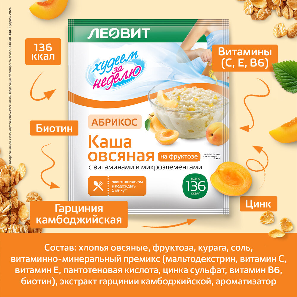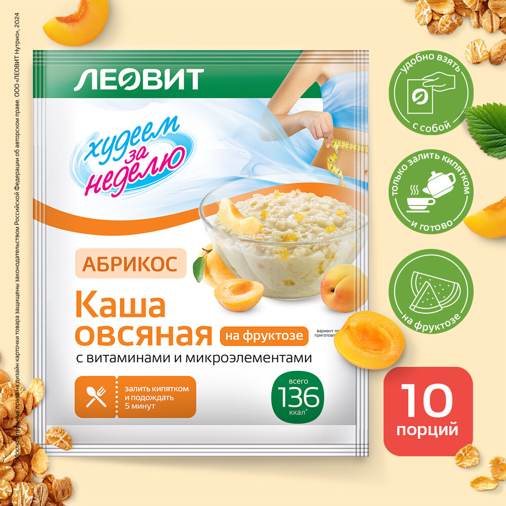 Каша овсяная Абрикос без сахара 10 шт 40 г с витаминами и микроэлементами Худеем за неделю ЛЕОВИТ быстрого приготовления интересное: