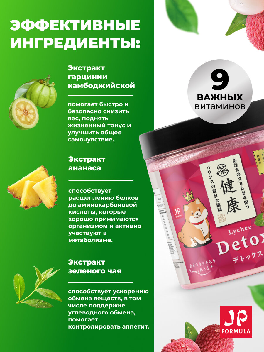 Напиток дренажный для похудения с гарцинией и витаминами со вкусом Личи Japan Formula интересное: