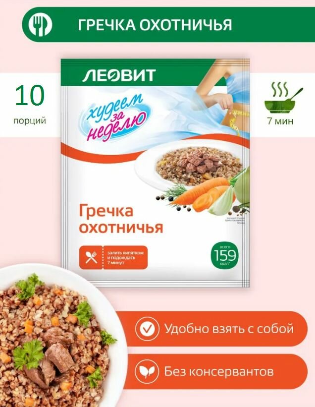 Специализированное питание "Худеем за неделю "Гречка охотничья", 10 шт. по 50 гр. интересное: