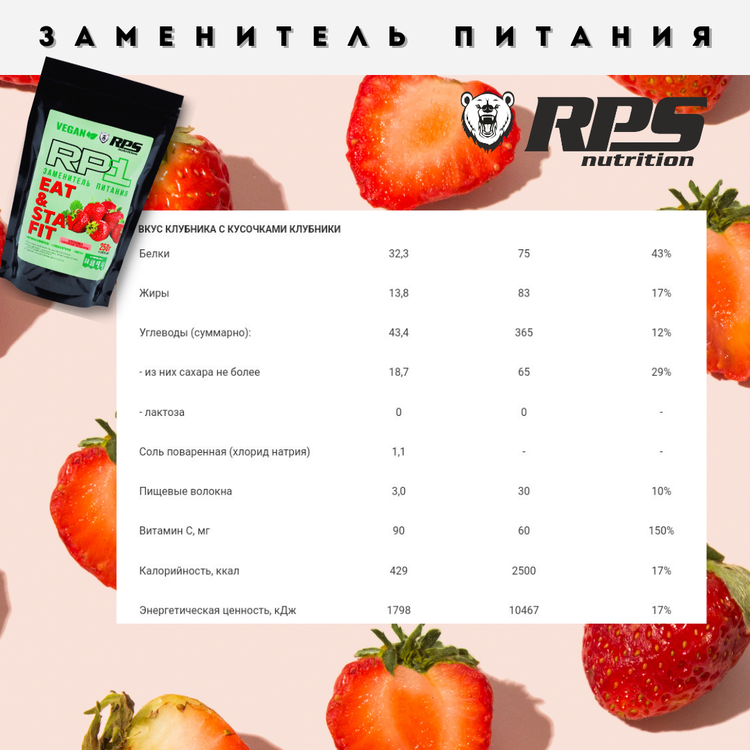 EAT AND STAY FIT VEGAN Заменитель питания RPS NUTRITION пакет 250г Вкус: Клубника (с кусочками клубники) интересное: