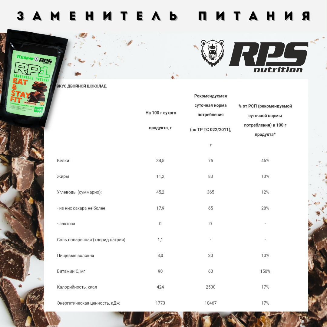 EAT AND STAY FIT VEGAN Заменитель питания RPS NUTRITION пакет 250гр. Вкус: Двойной шоколад интересное: