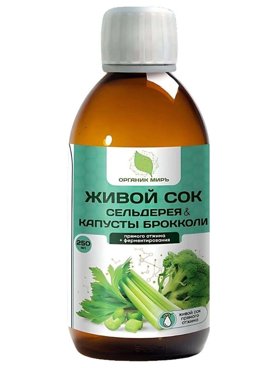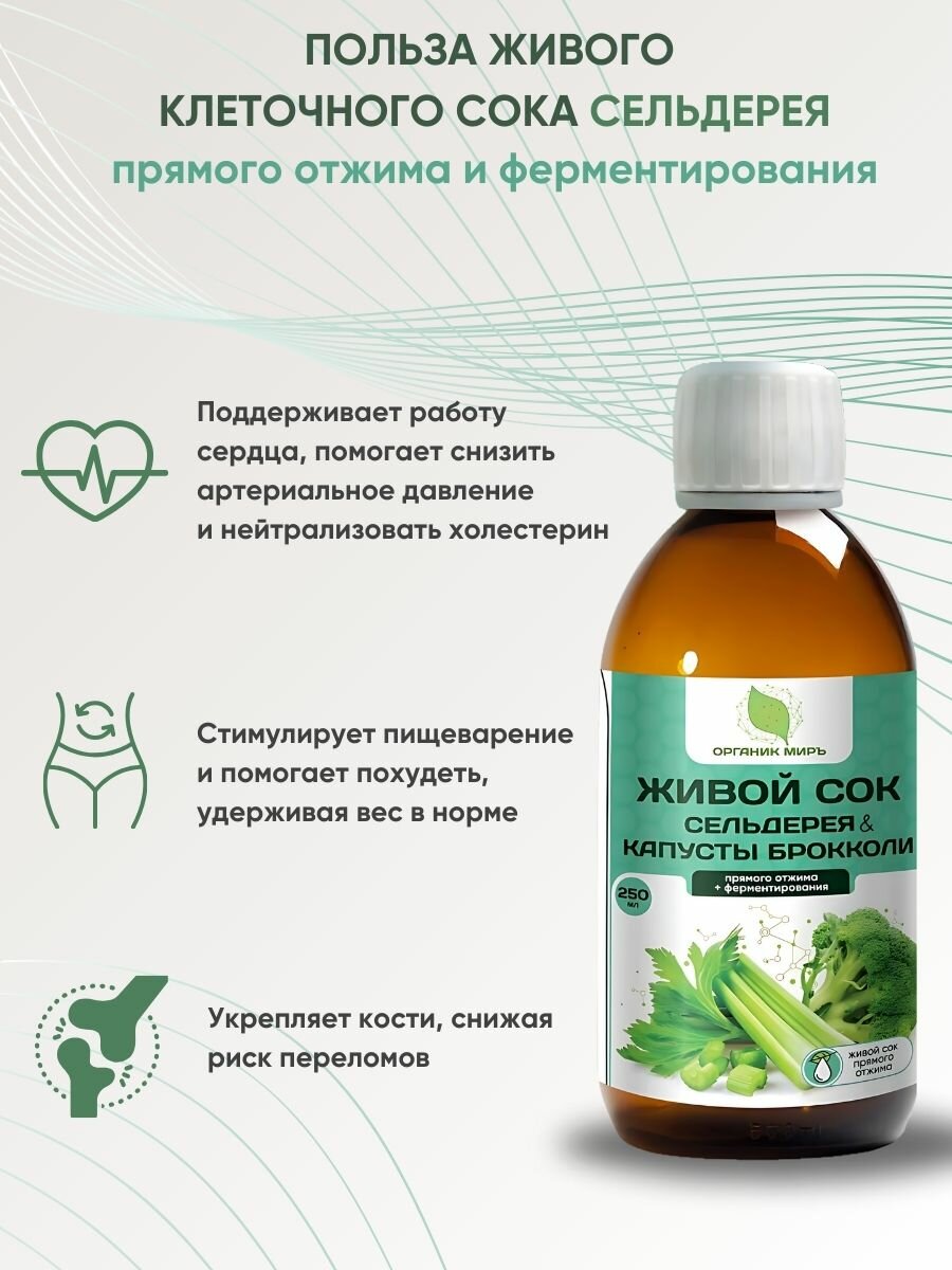 Живой сок сельдерея и капусты брокколи прямого отжима + ферментирования органик миръ 250 мл интересное: