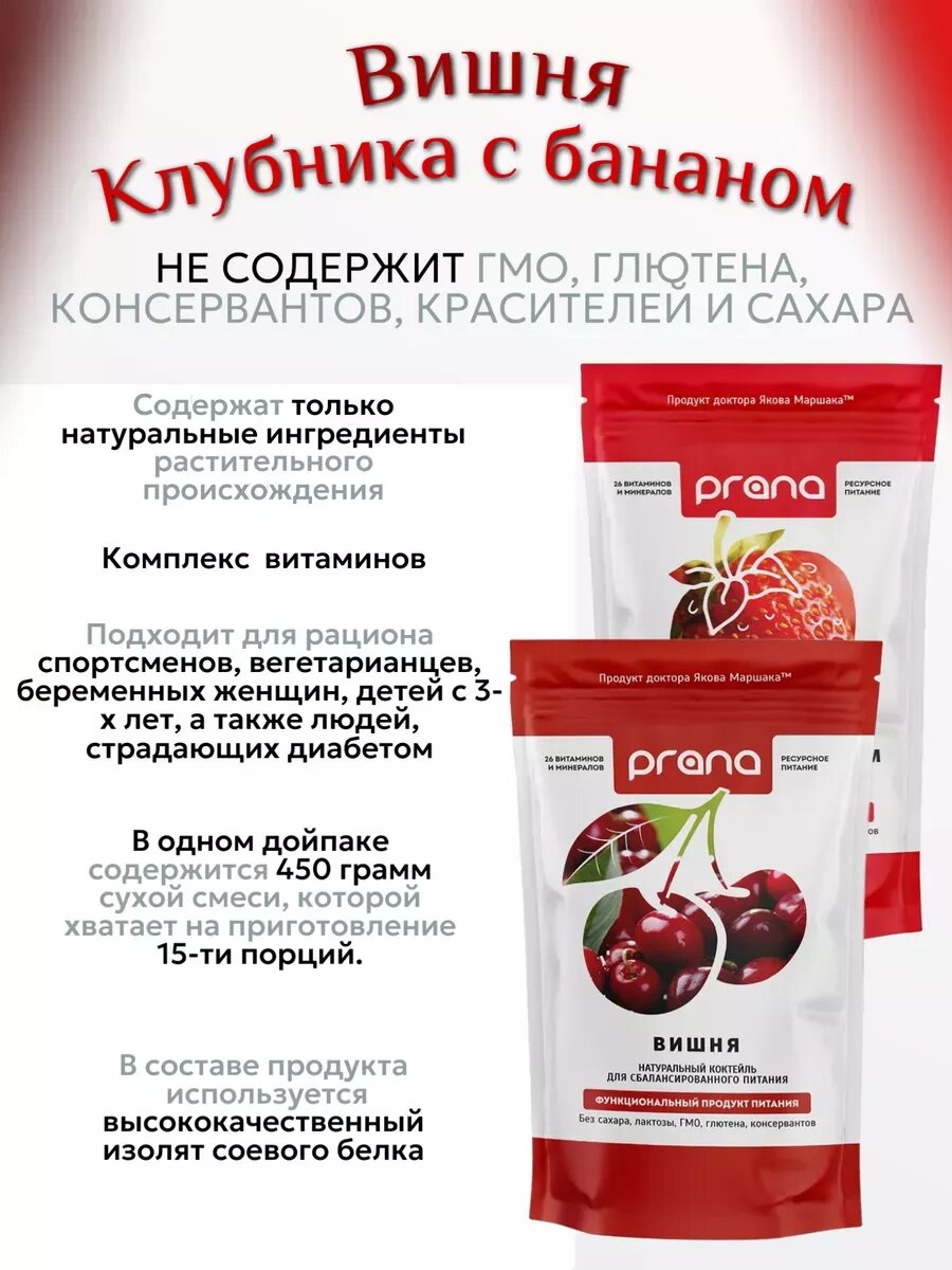 Белковый коктейль для похудения и замены питания "PRANA food" - Вишня, 450 гр.