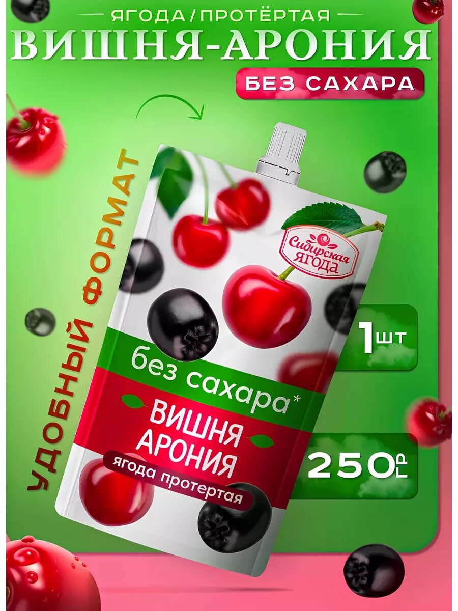 Протертая ягода Вишня + Арония, Сибирская ягода, без сахара, 250г интересное: