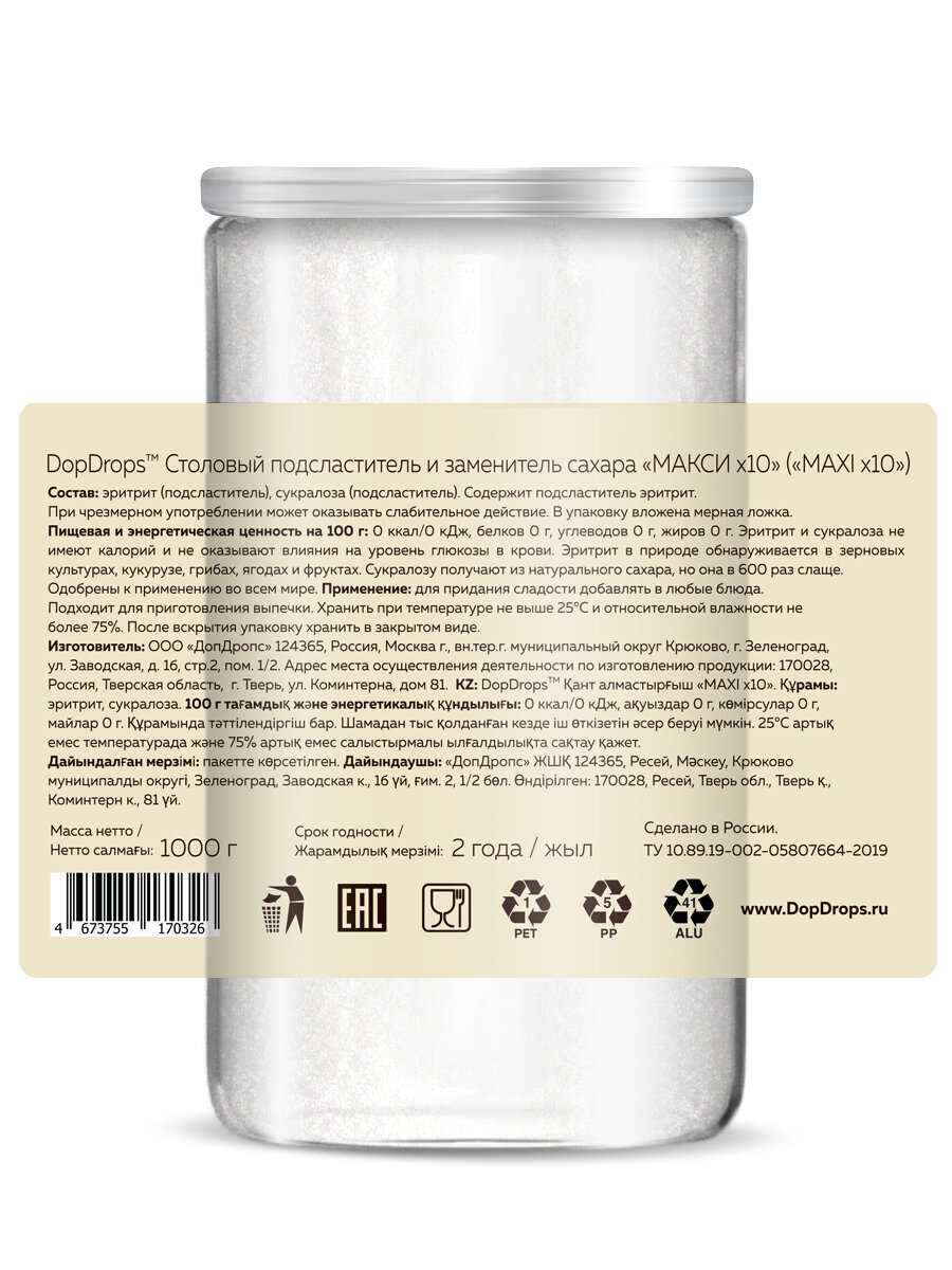 Сахарозаменитель DopDrops MAXI без сахара заменитель сахара 1000 г интересное: