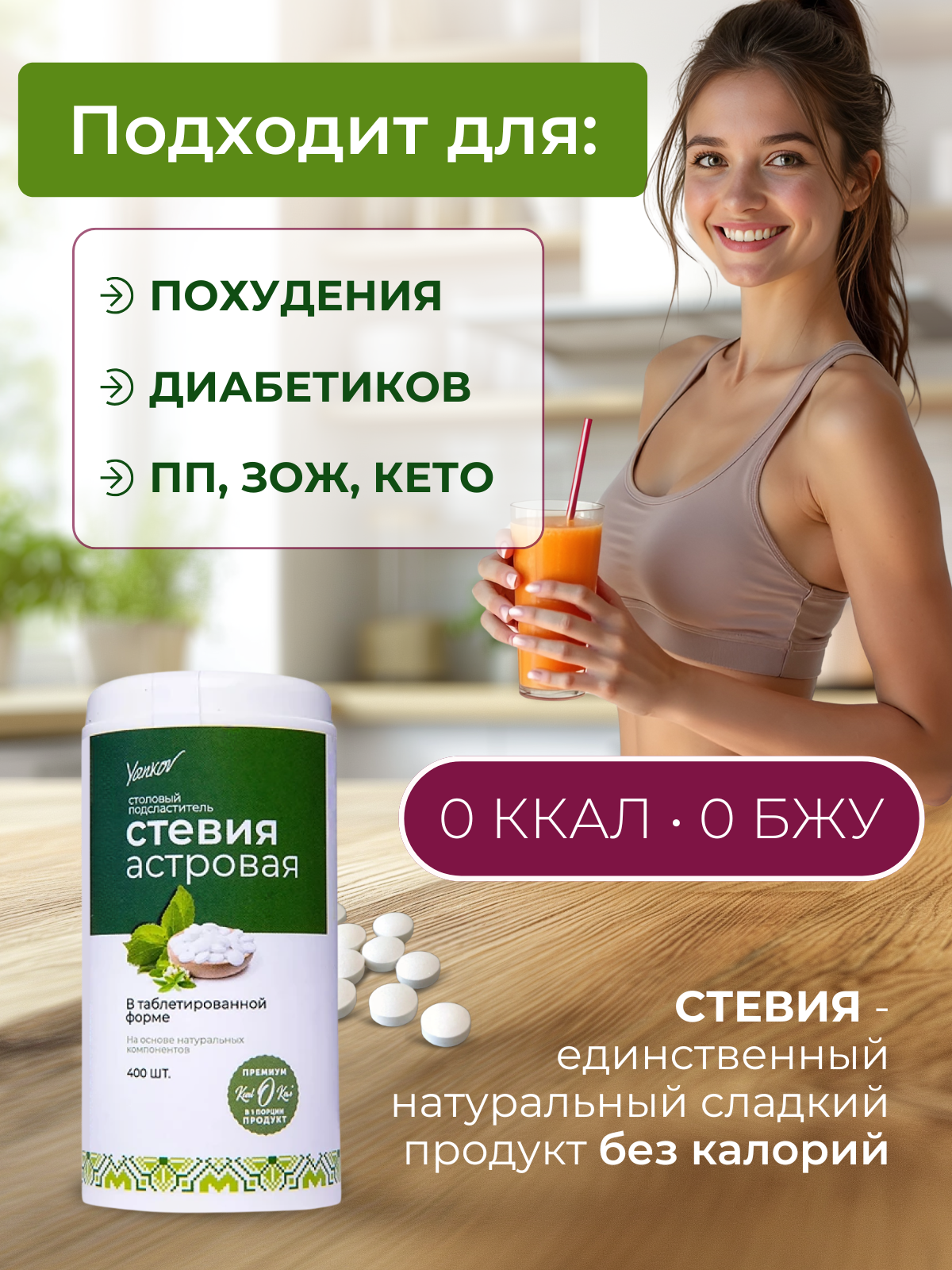 Сахарозаменитель в таблетках Yankov Стевия Астровая, 400 шт. интересное: