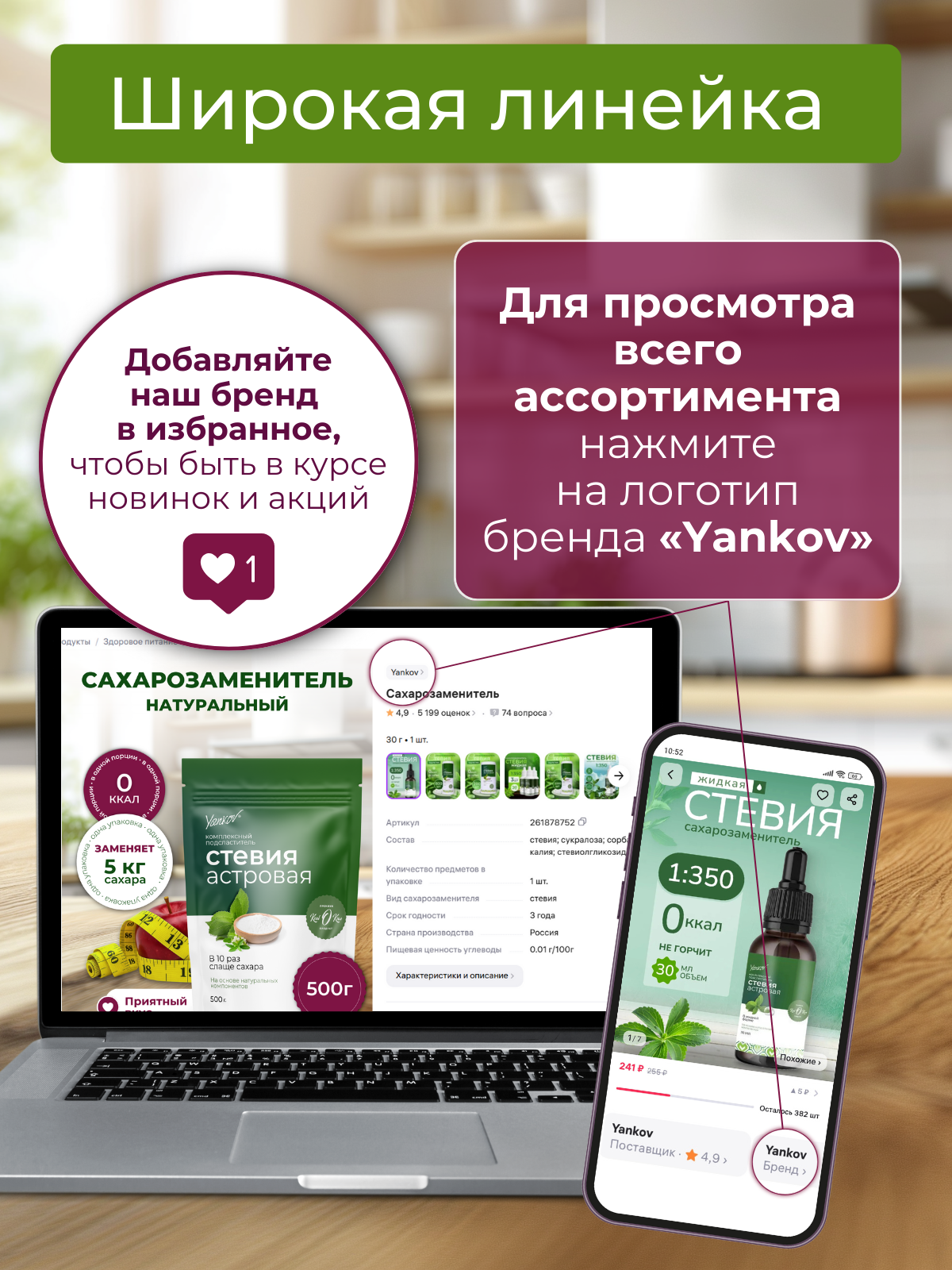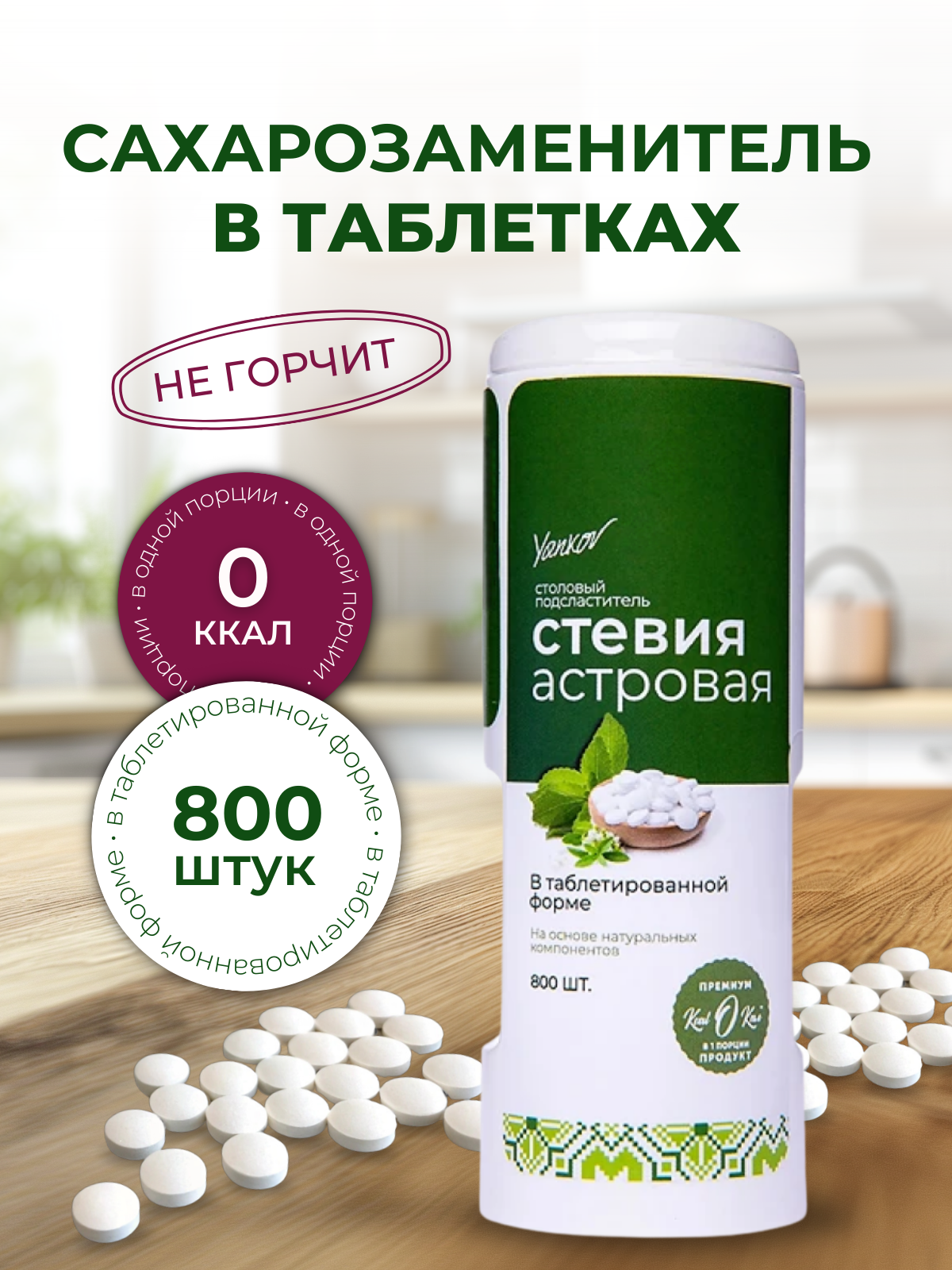 Сахарозаменитель в таблетках Yankov Стевия Астровая, 800 штук интересное: