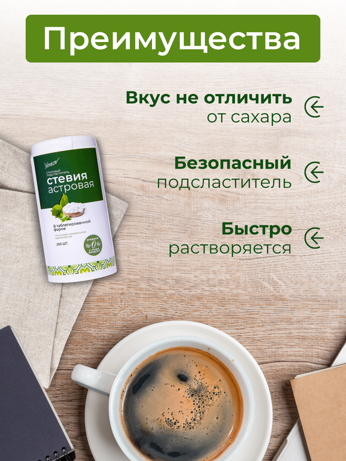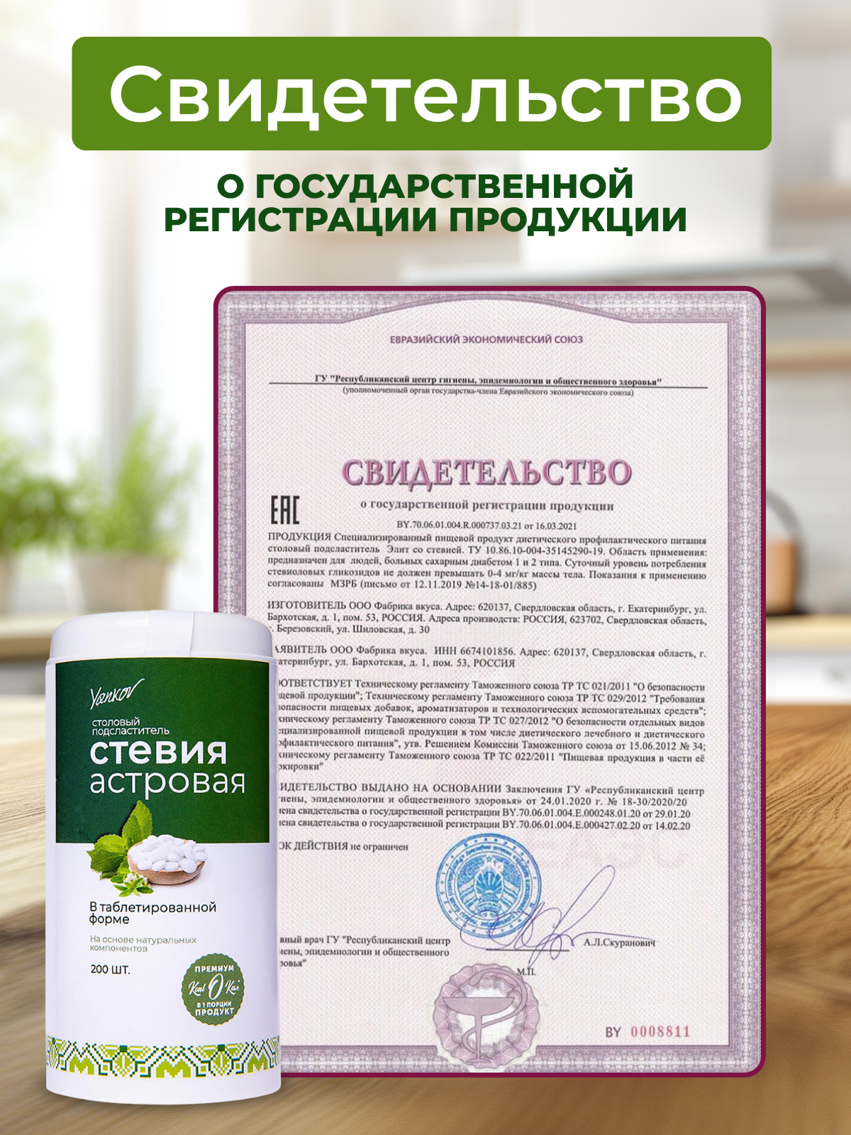 Сахарозаменитель в таблетках Yankov Стевия Астровая, 200 штук интересное: