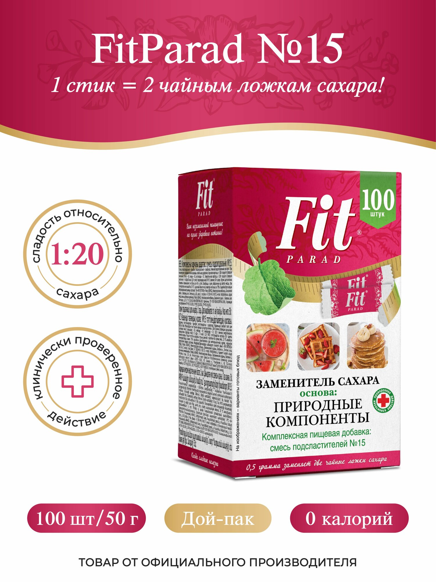 FitPARAD / Сахарозаменитель ФитПарад №15 стик, коробка 100 шт. интересное: