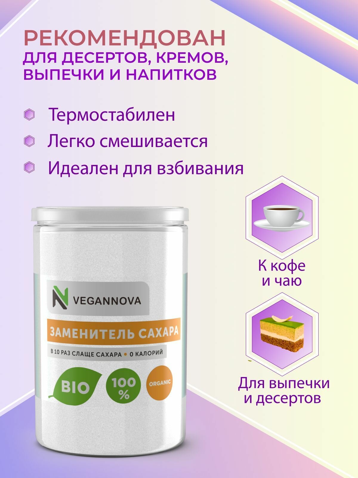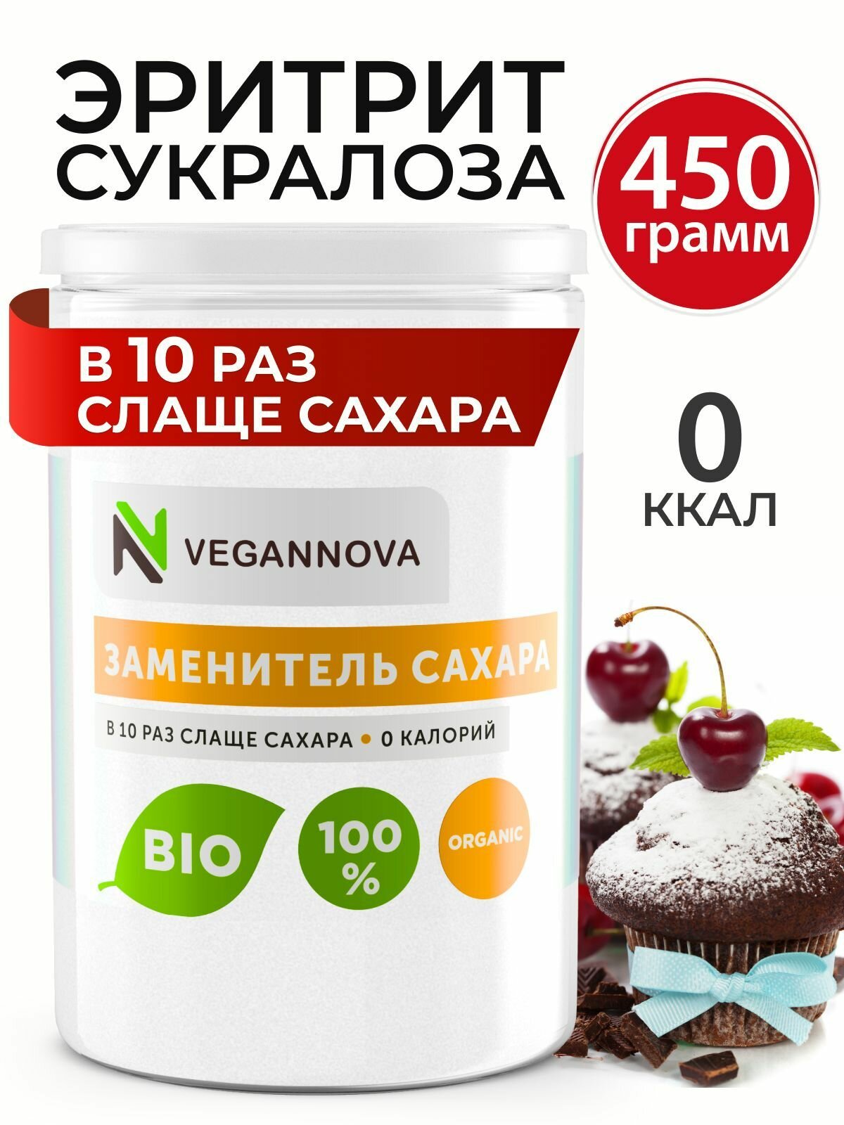 VeganNova Сахарозаменитель эритрит + сукралоза, банка 450 г интересное: