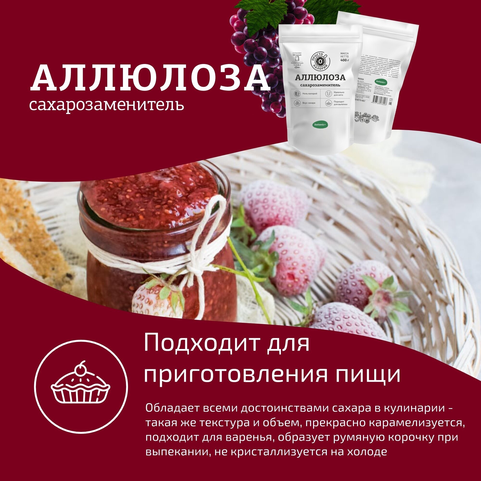 Сахарозаменитель Аллюлоза Botanic+, натуральный, без добавок 400 г интересное: