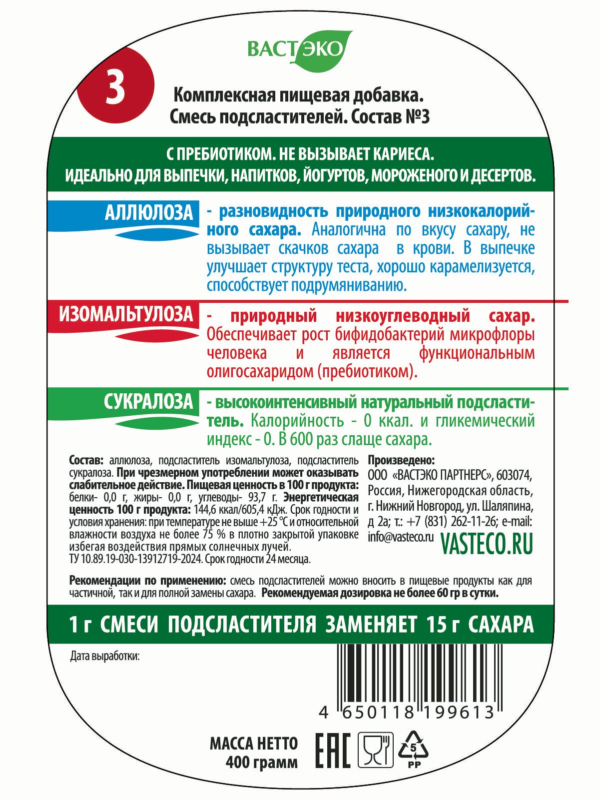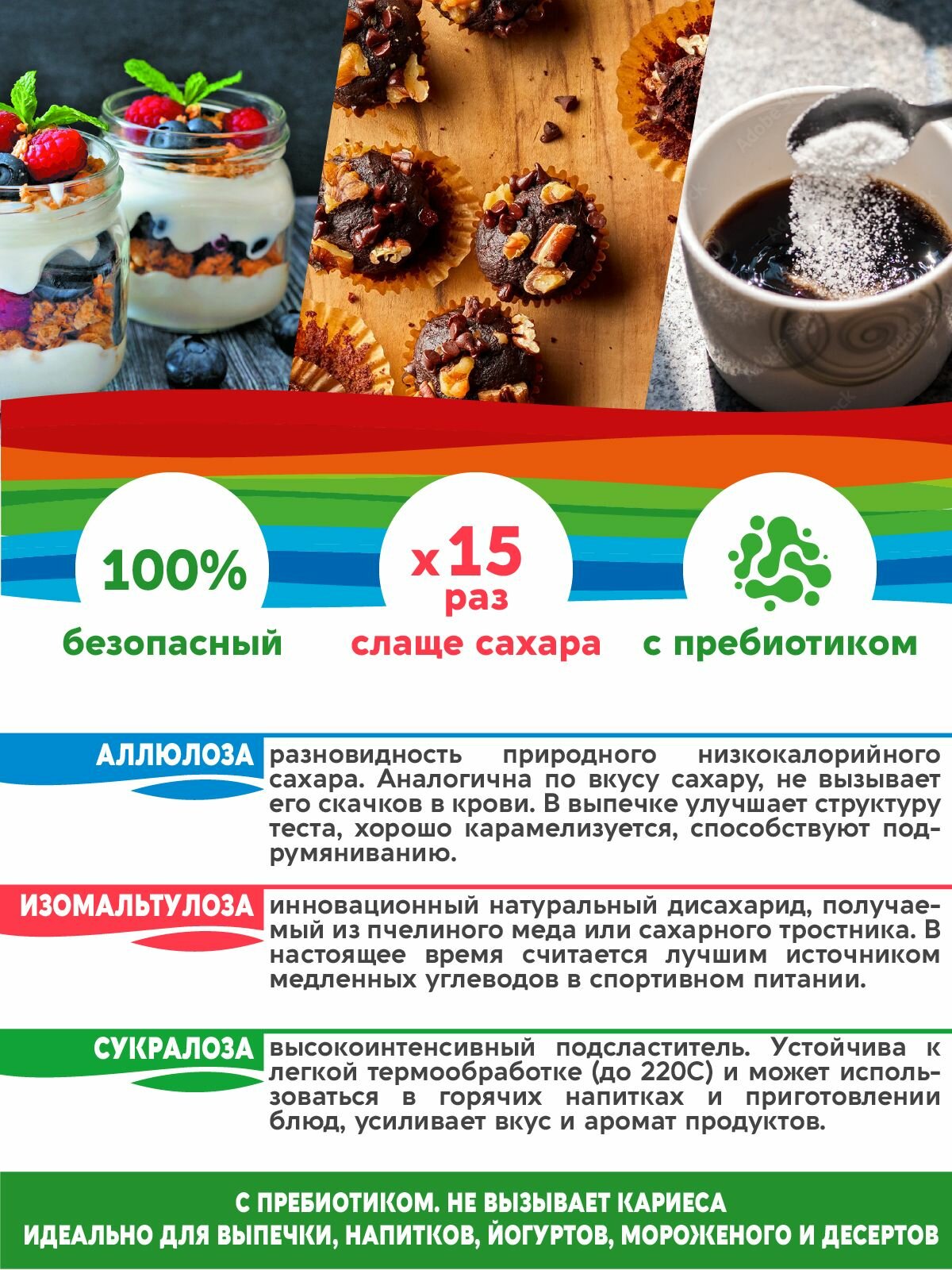 Купить Сахарозаменитель, смесь подсластителей. Состав №3 (аллюлоза, изомальтулоза, сукралоза), 400 г