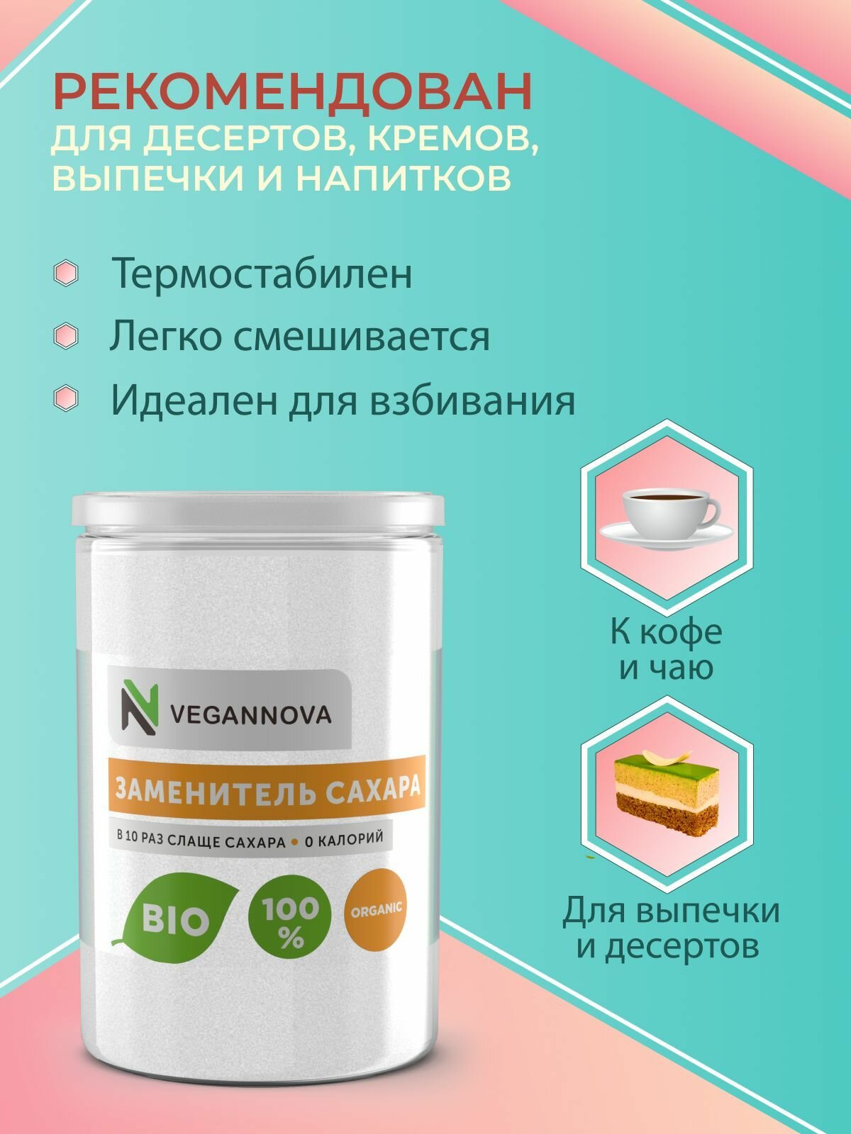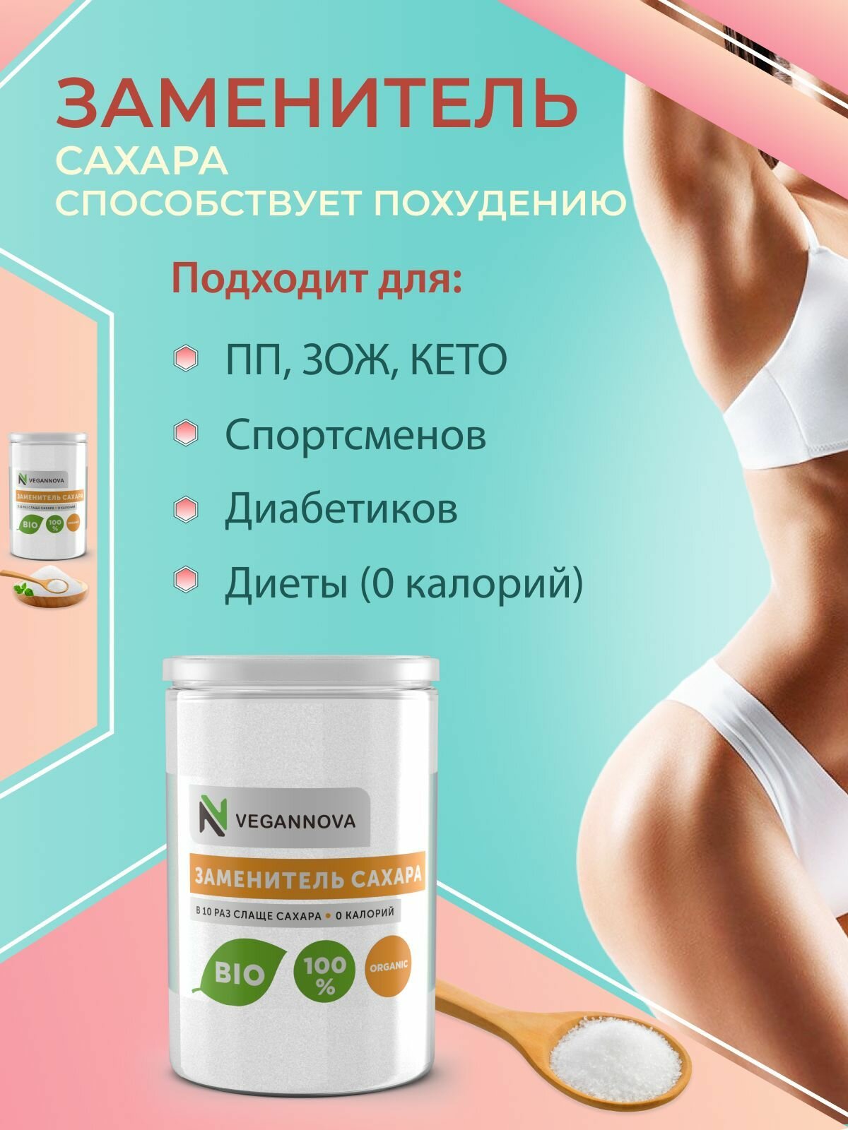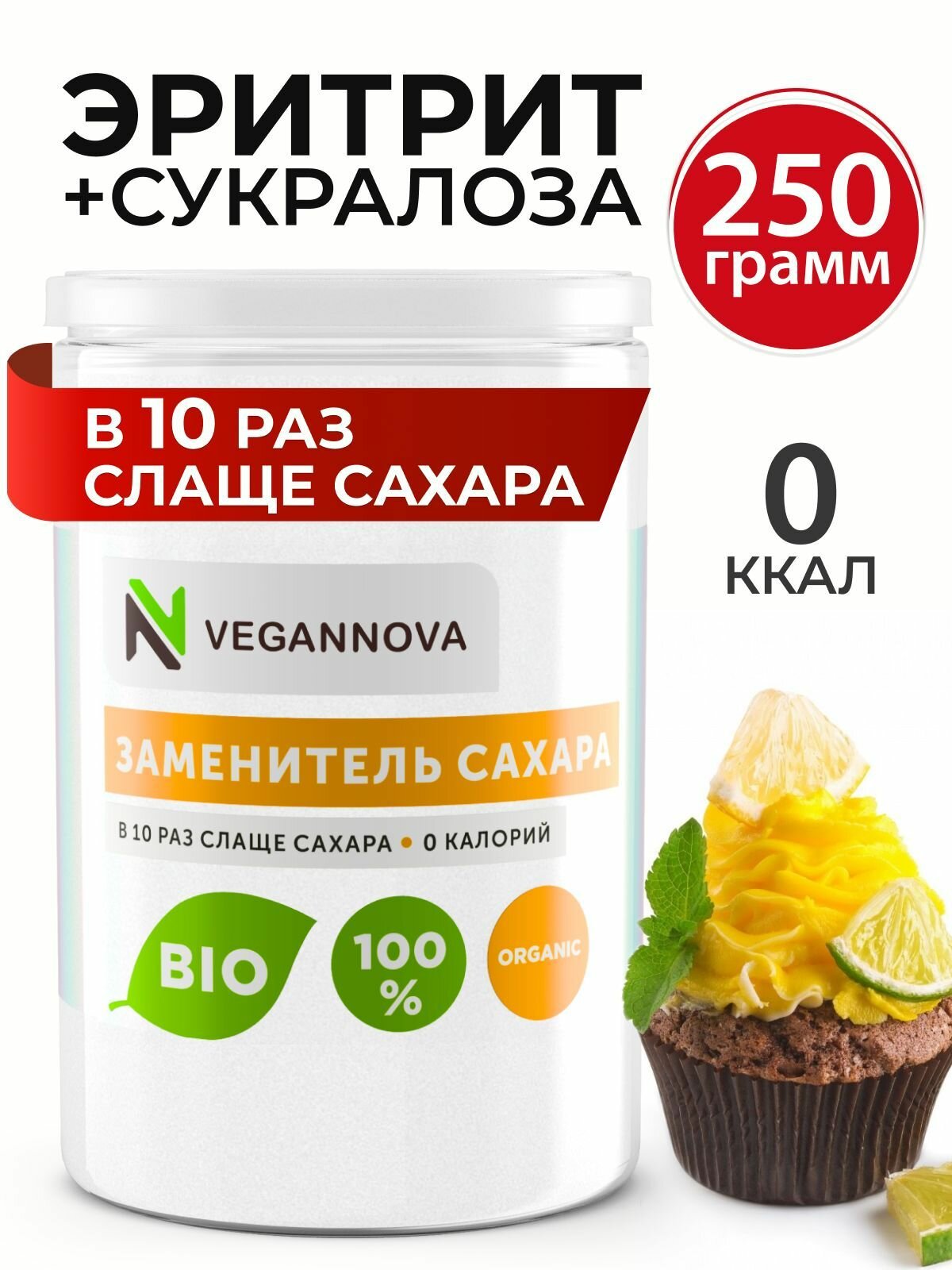 VeganNova Сахарозаменитель эритрит + суклароза, натуральный, банка 250 г интересное: