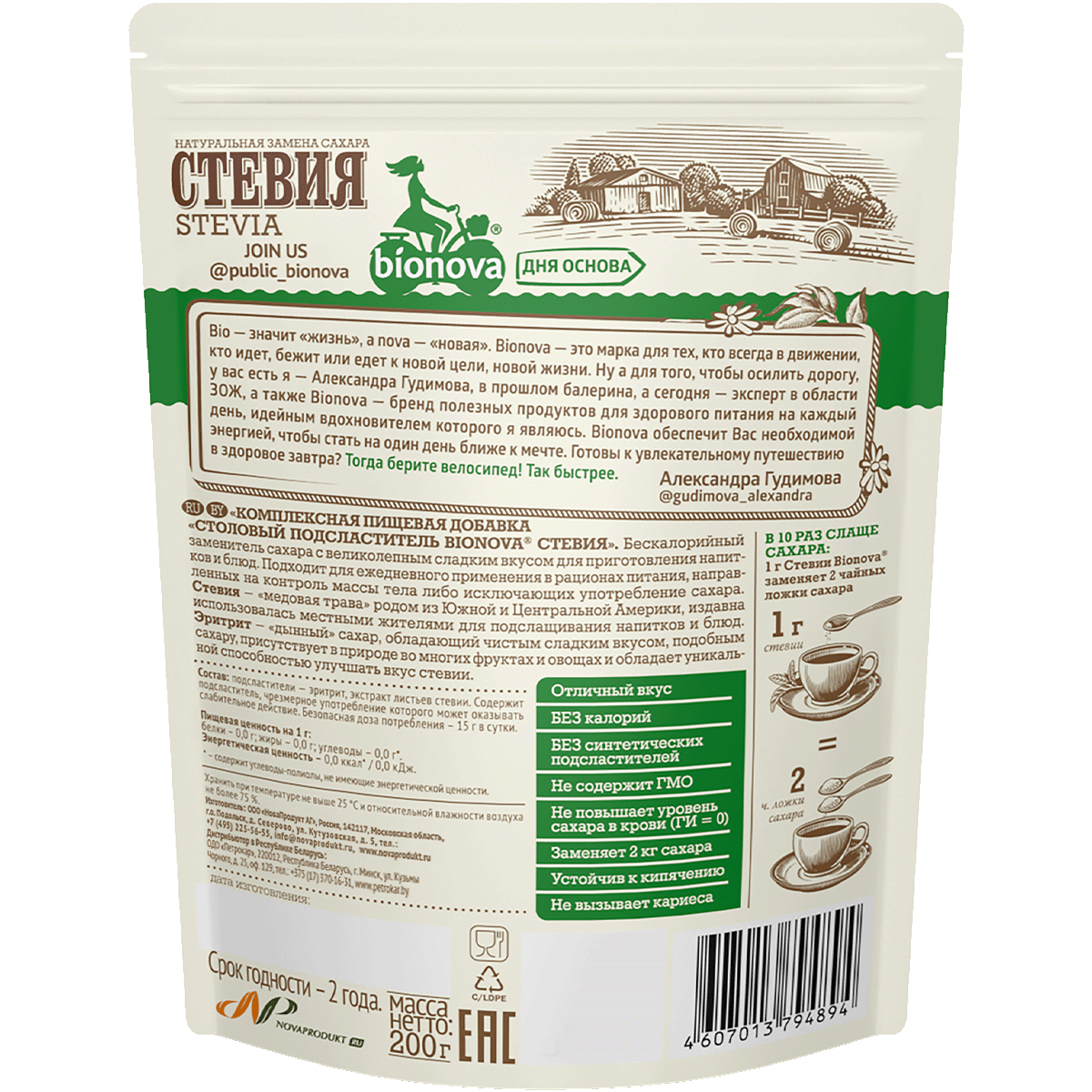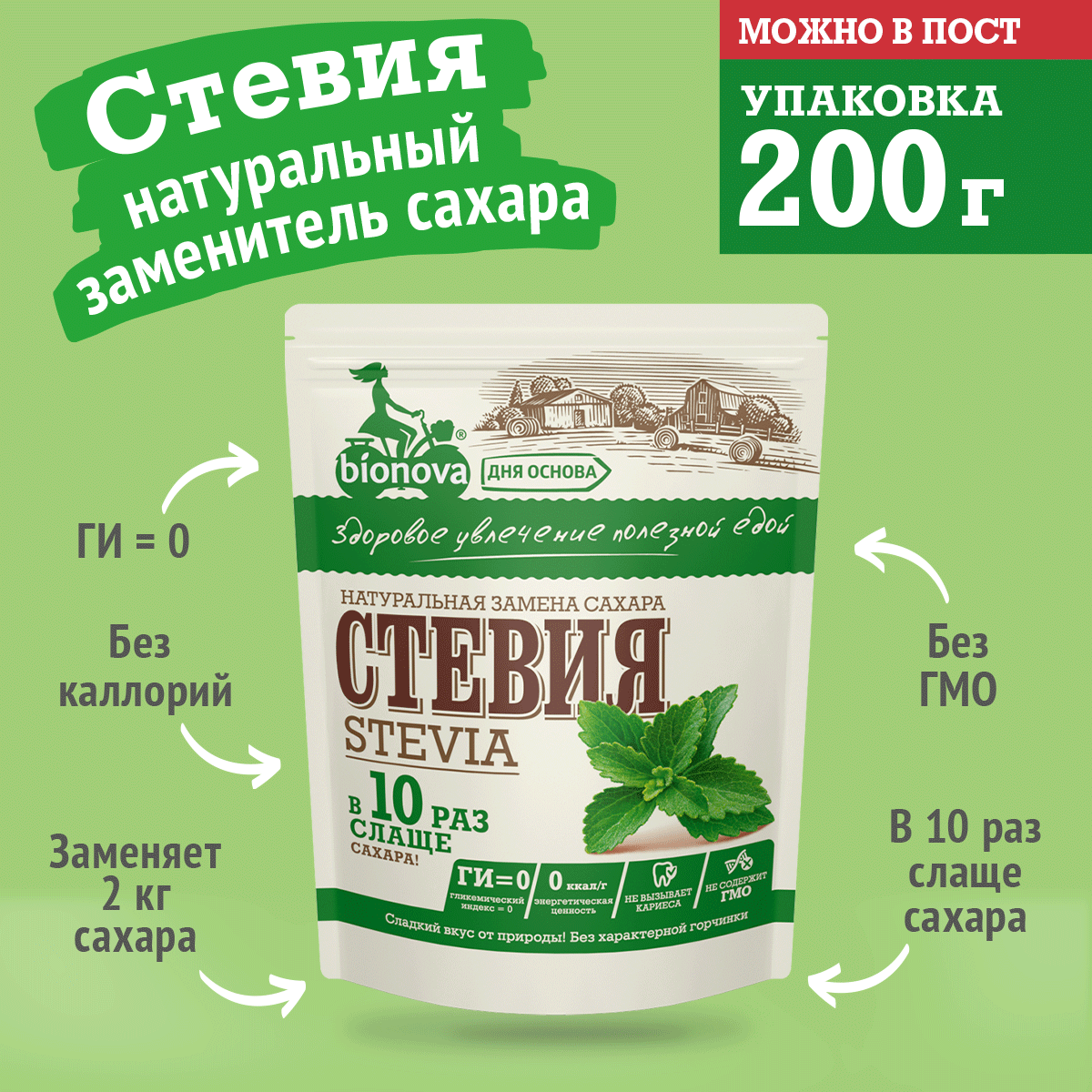 BIONOVA Сахарозаменитель Стевия порошок, 200 г интересное: