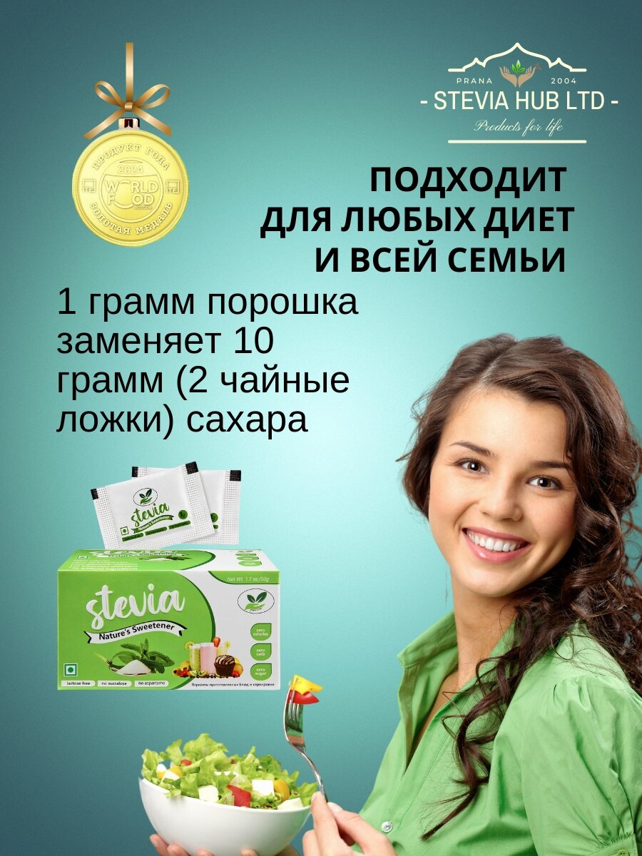 Сахарозаменитель Стевия природный, натуральный подсластитель Стевия порошок 100 г, таблетки 100 штук, саше 50 штук