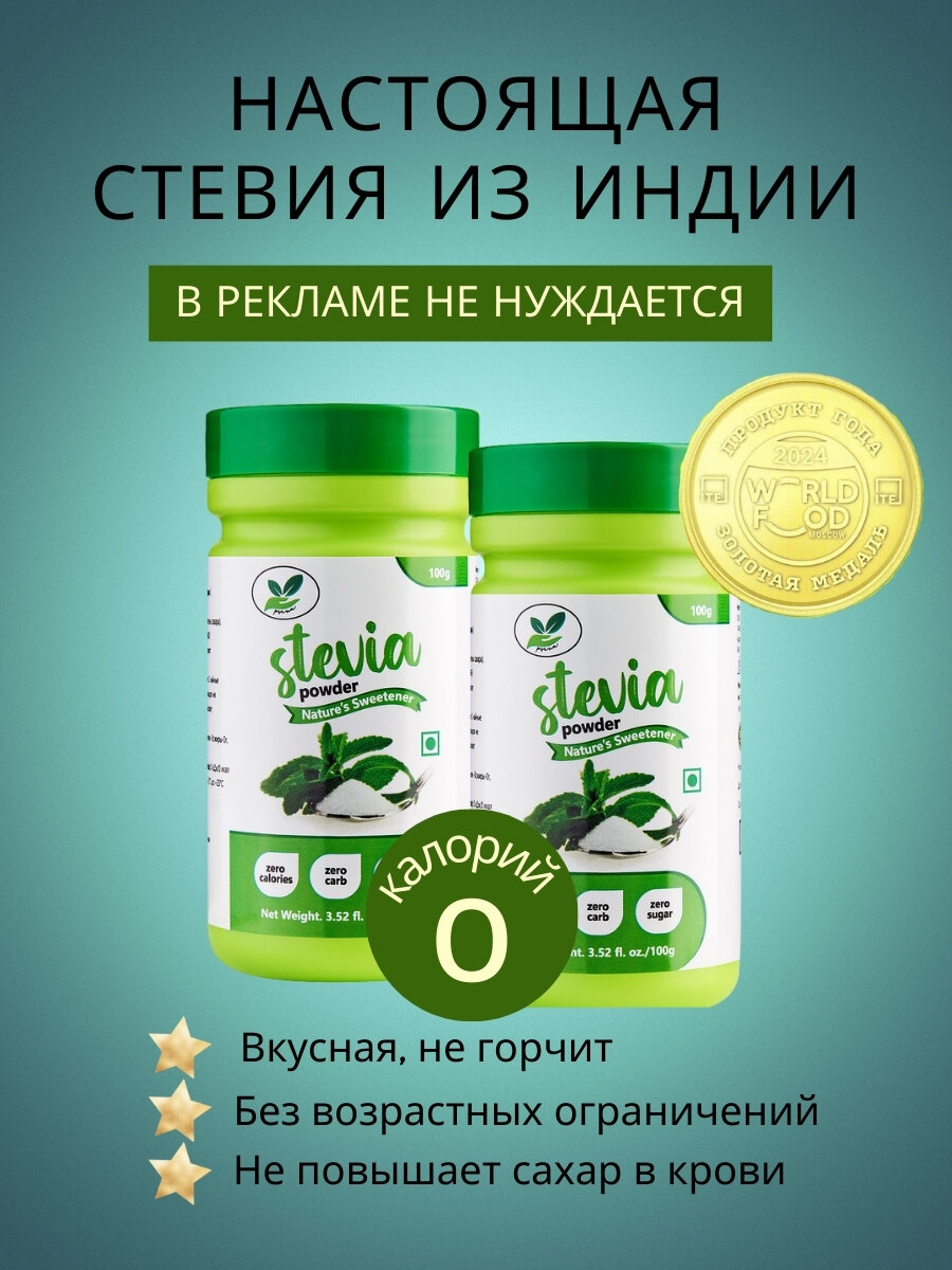 Купить Сахарозаменитель Стевия природный, натуральный подсластитель порошок 100 г 2 банки