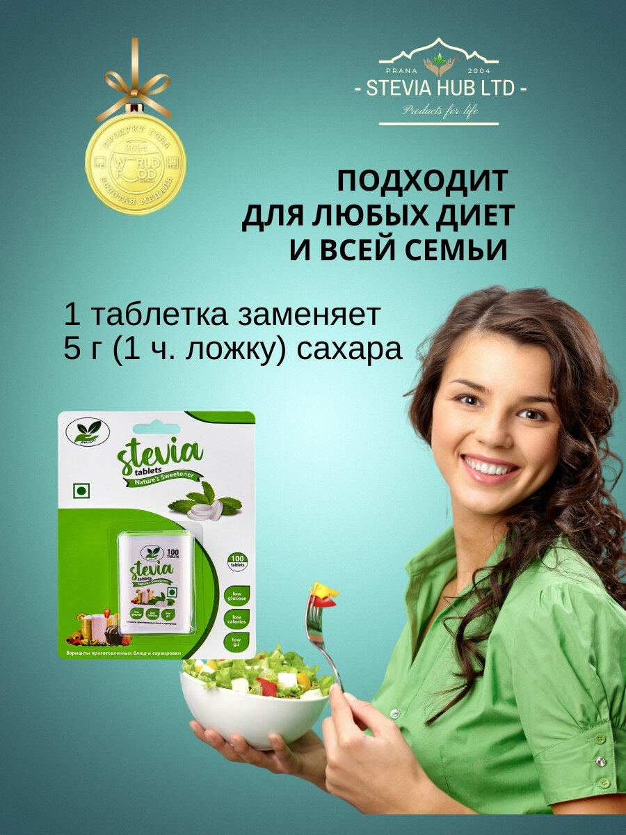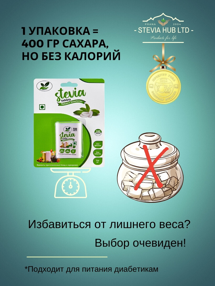 Сахарозаменитель Стевия природный, натуральный подсластитель порошок 100 г, Стевия таблетки 100 штук
