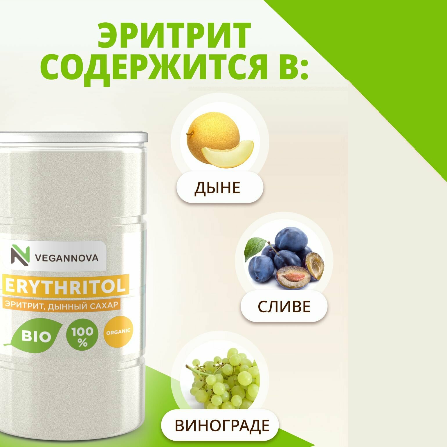 VeganNova Эритрит (Erythritol), сахарозаменитель, 2 шт по 1 кг интересное: