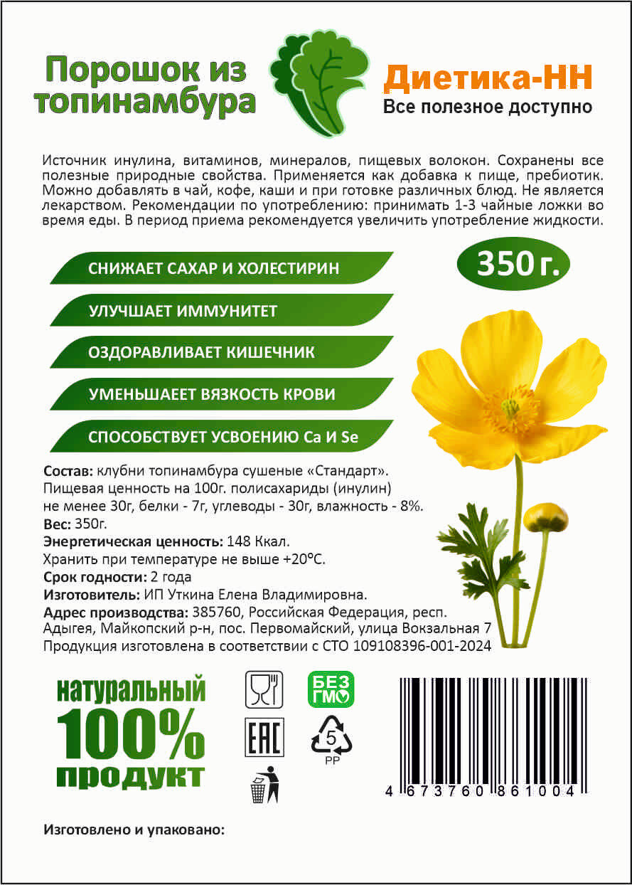 Порошок топинамбура 350гр ( 100% корни топинамбура ) интересное: