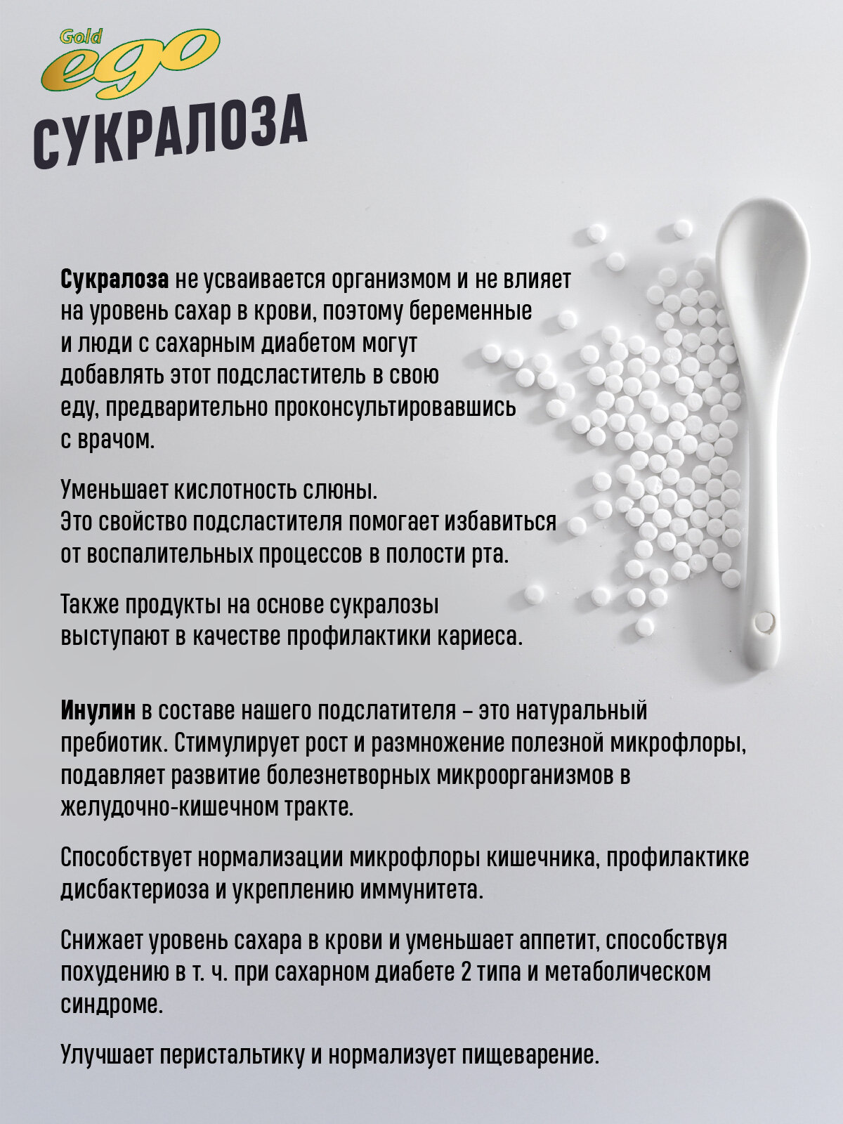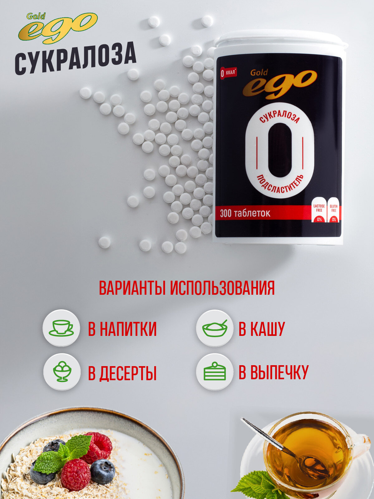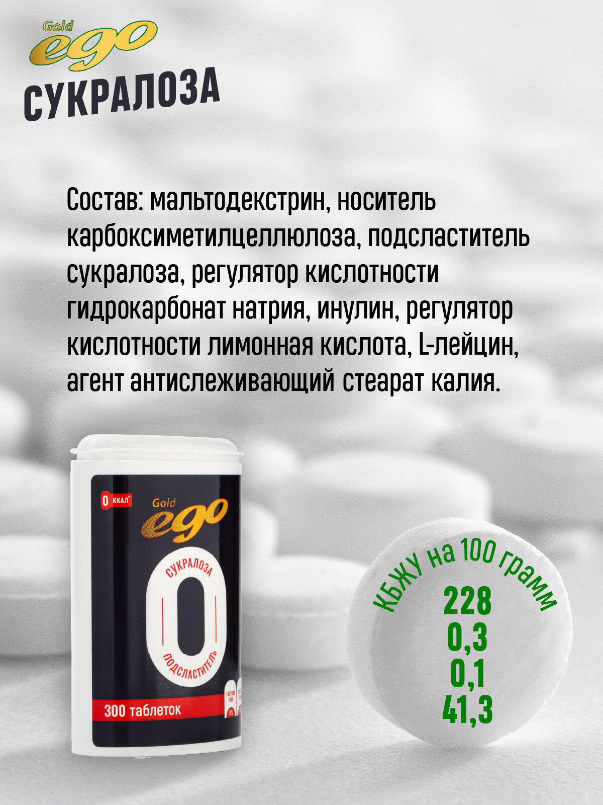 Сахарозаменитель Сукралоза Ego 300 таблеток / подсластитель интересное:
