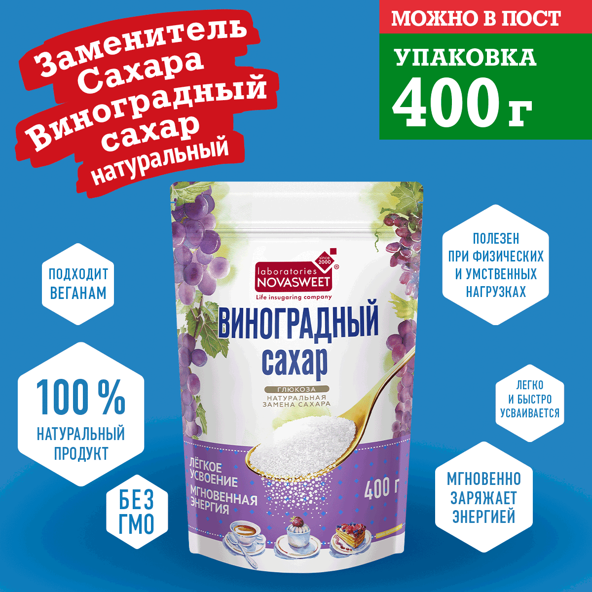NOVASWEET Сахар виноградный порошок, 400 г интересное:
