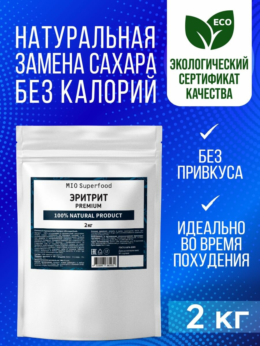 Сахарозаменитель Эритрит, заменитель сахара, Miosuperfood натуральный столовый подсластитель 2000 г, эритритол, ПП интересное: