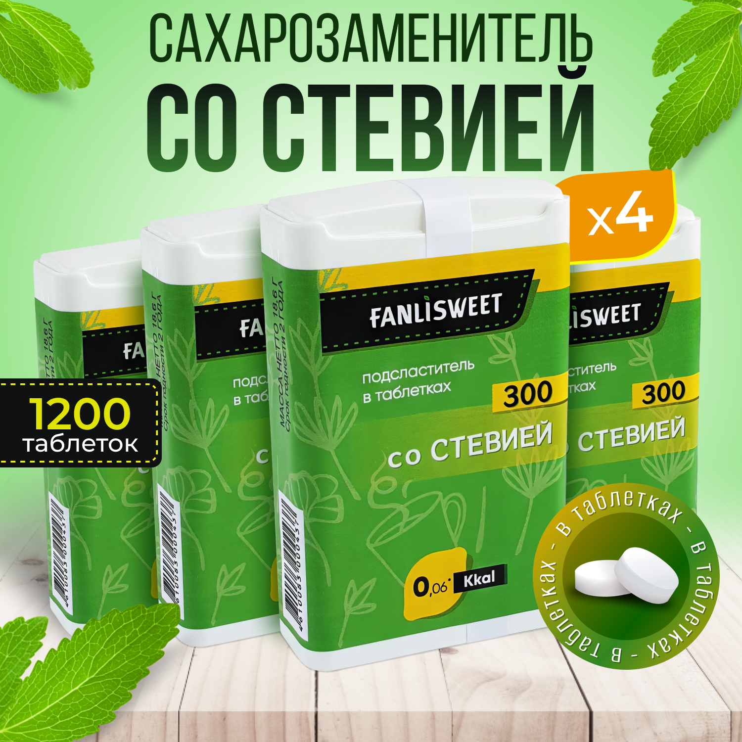 Купить Cтевия таблетки FANLISWEET новый дозатор 4 х 300 (1200 таб.) сахарозаменитель