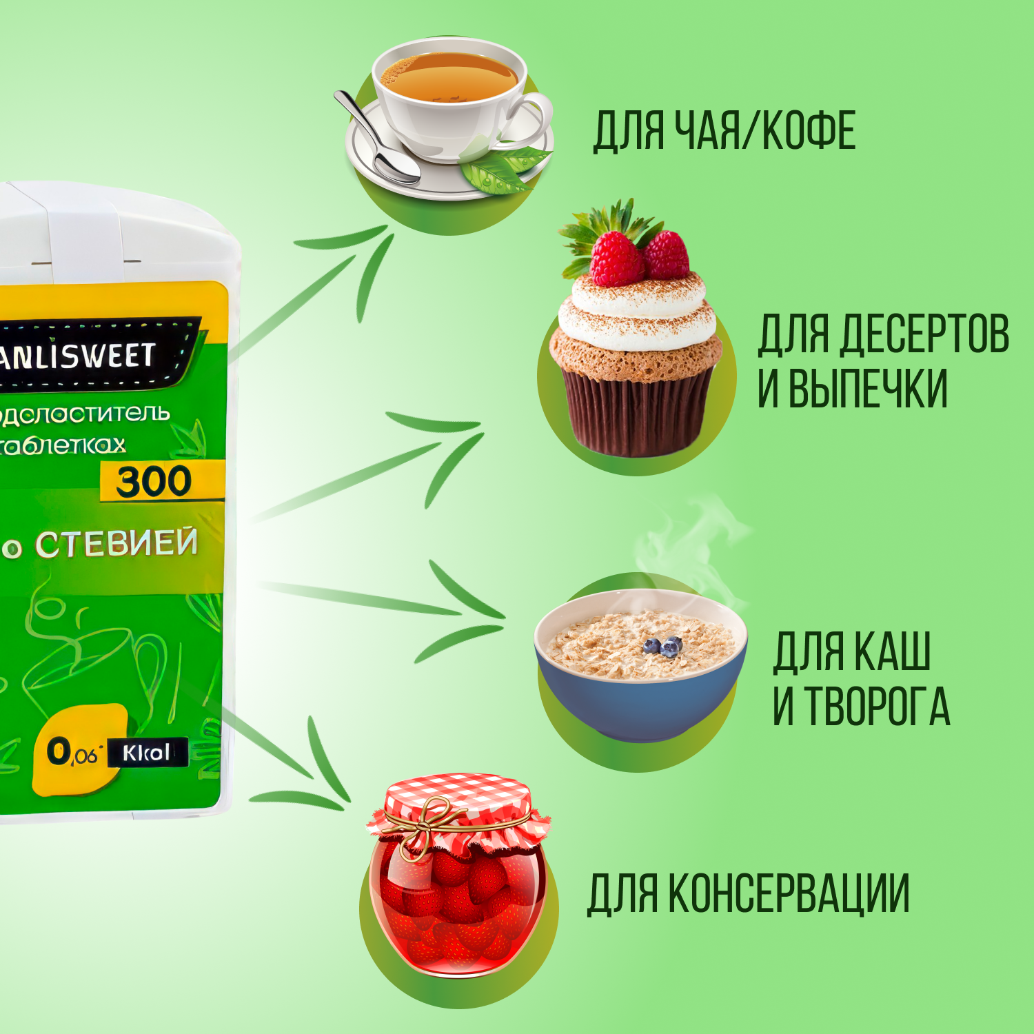 Cтевия таблетки FANLISWEET новый дозатор 4 х 300 (1200 таб.) сахарозаменитель