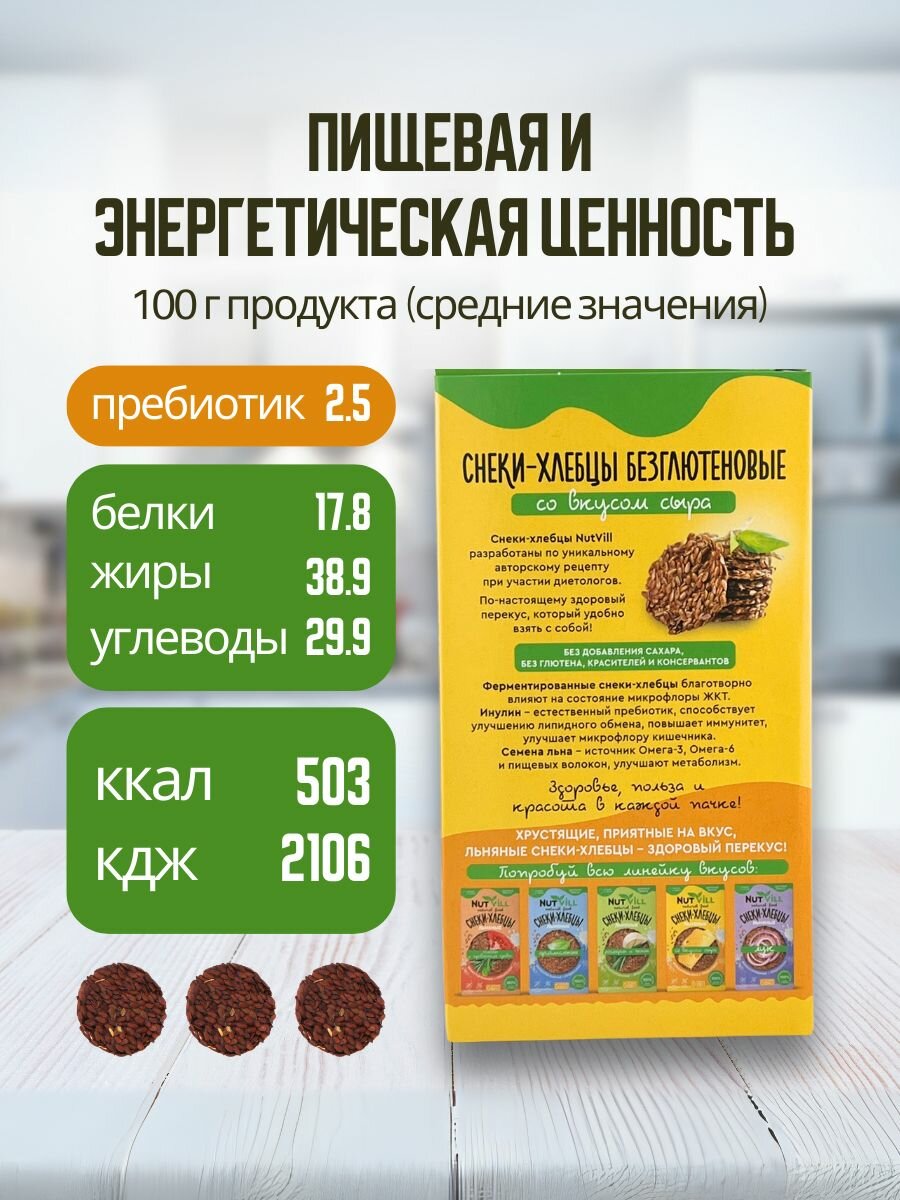 NutVill Хлебцы льняные ассорти - лук, розмарин и чеснок, оригинальные, сыр, томат и прованские травы - без глютена и без сахара, 5 шт интересное: