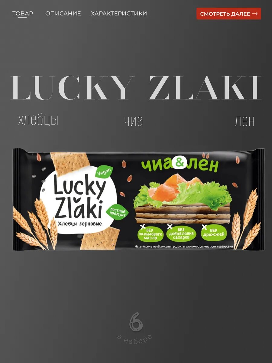 Хлебцы "Lucky Zlaki" хрустящие зерновые "Чиа-лен" 105 гр. 6 шт. интересное: