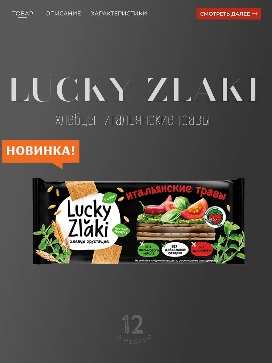 Хлебцы "Lucky Zlaki" хрустящие зерновые "Итальянские травы" 105 гр. 12 шт. интересное: