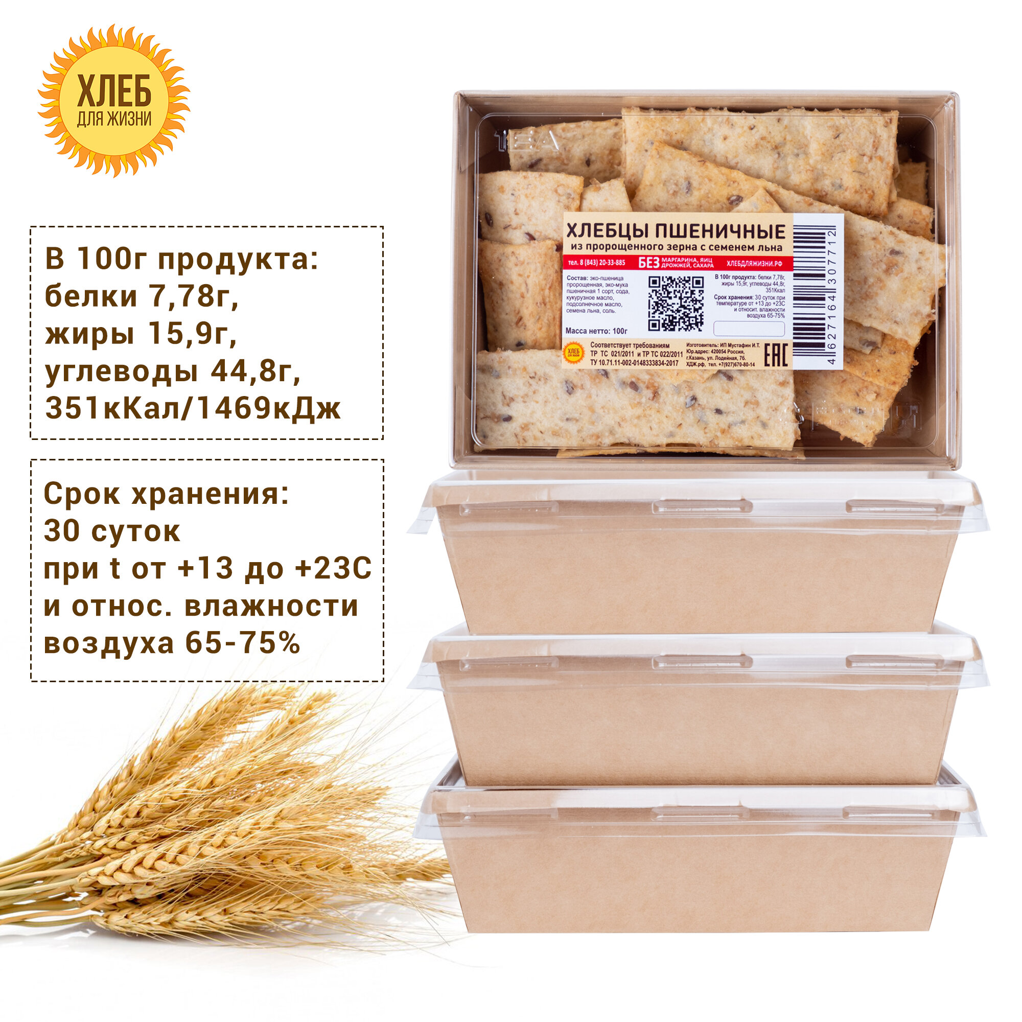 Купить (4х100г) Хлебцы Пшеничные из пророщенного зерна с семенами льна