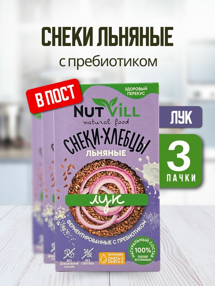 NutVill Снеки-хлебцы льняные Лук без глютена, 3 шт. интересное: