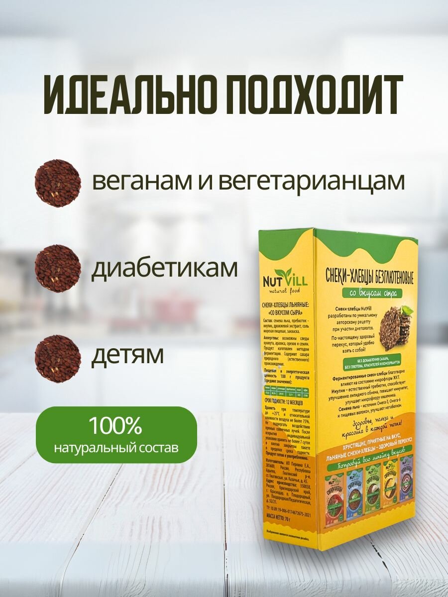 NutVill Снеки-хлебцы льняные Сыр без глютена, 3 шт. интересное: