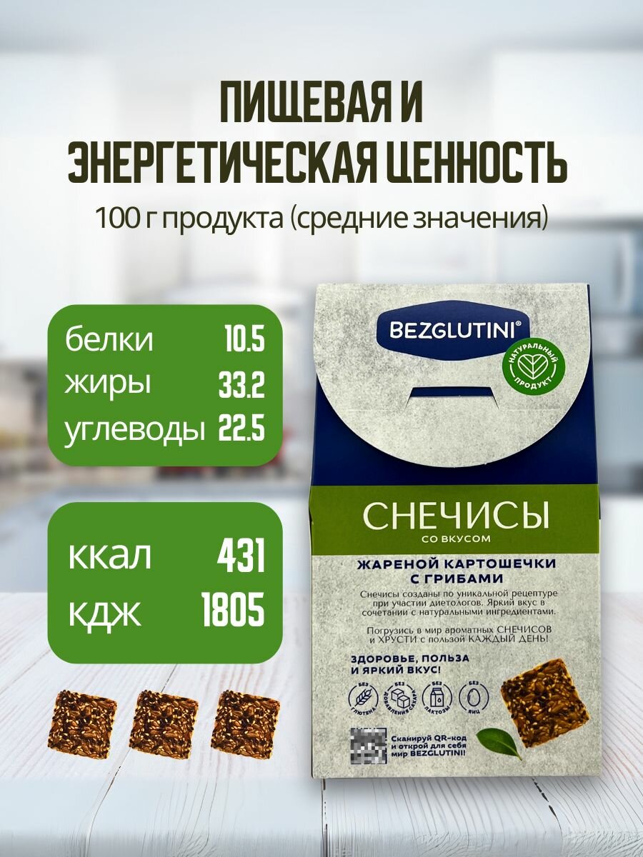 Bezglutini Снечисы со вкусом жареной картошечки с грибами без лактозы и сахара интересное: