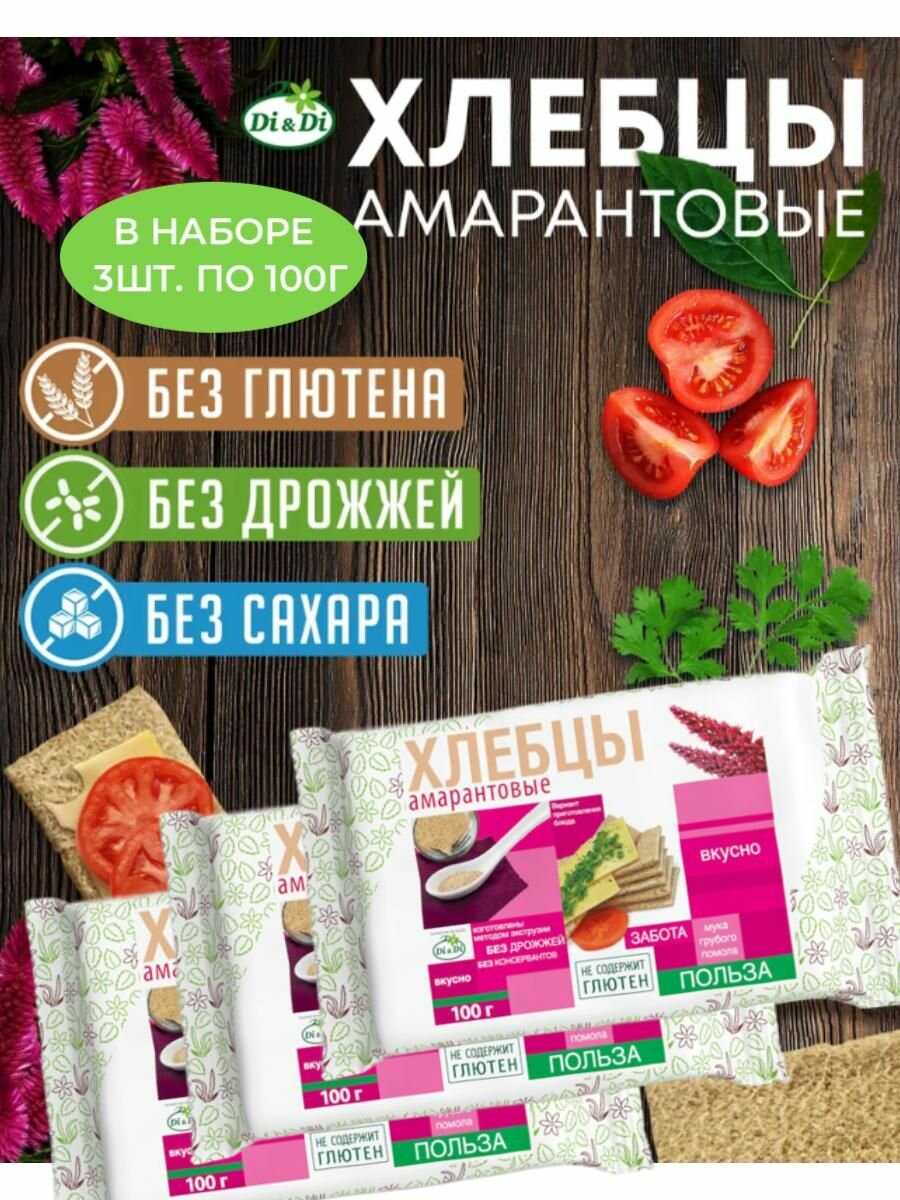 Купить Хлебцы амарантовые без глютена/Di&Di (в наборе 3 шт. по 100г)