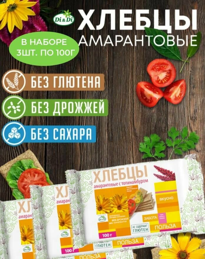 Купить Хлебцы амарантовые с топинамбуром/Di&Di (в наборе 3 шт. по 100г)