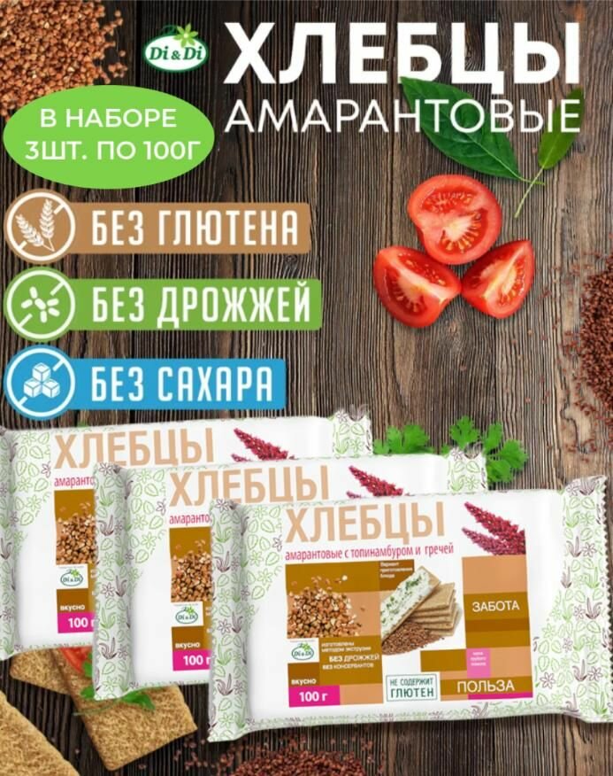 Купить Хлебцы амарантовые с топинамбуром и гречей/Di&Di (в наборе 3 шт. по 100г)
