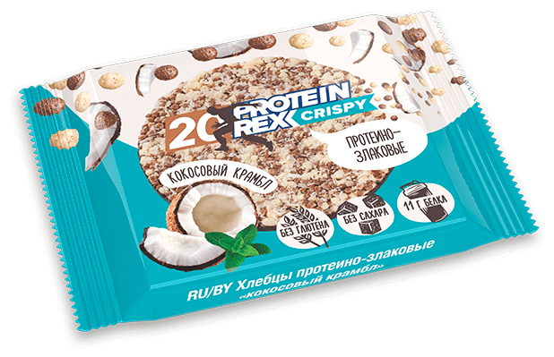 Proteinrex Хлебцы протеино-злаковые 20% протеина Crispy (12 шт в уп) 55 г Кокосовый крамбл интересное: