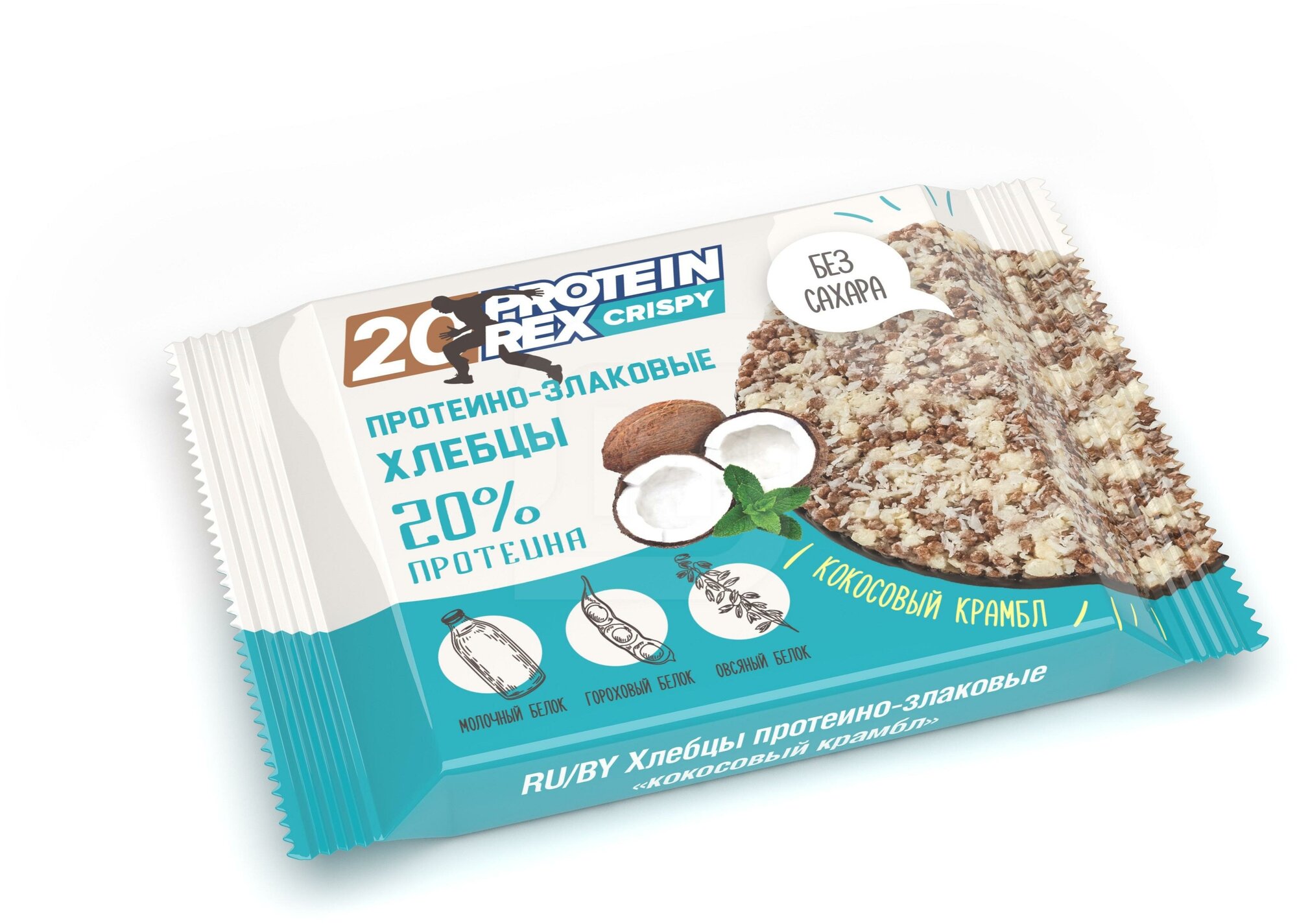 Купить Proteinrex Хлебцы протеино-злаковые 20% протеина Crispy (12 шт в уп) 55 г Кокосовый крамбл