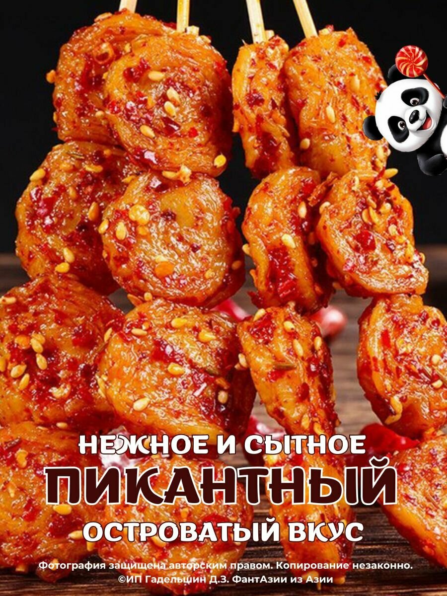 Набор снеков. Азиатские мясные острые колбаски из соевого мяса интересное: